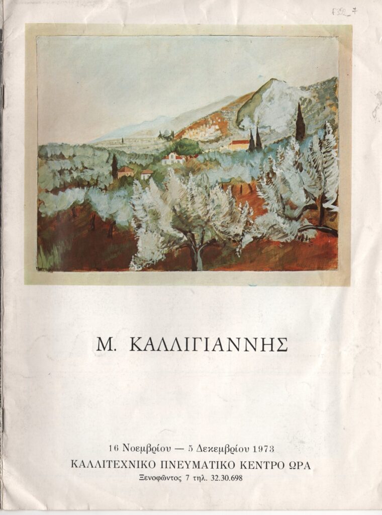 Spiteri-Veropoulou Ioanna (1920 - 2000) ; Vafeiadis Markos (1906 - 1992) ; Raftopoulou Bella (1902 - 1992) ; Pavlos (Dionyssopoulos) (1930 - 2019) ; Christoforou John (1921 - 2014) ; Fassianos Alekos (1935 - 2022) ; Μανώλης Καλλιγιάννης ; Simossi Gabriela (1926 - 1999) ; Tsarouchis Yannis (1910 - 1989) ; Tsoclis Costas (1930) ; (Panagopoulos) Daniel (1924 - 2008) ; Koulentianos Kostas (1918 - 1995) ; Vyzantios Ntikos (1924 - 2007) ; Tzolaki Rena (1930) ; Angelopoulos Aristomenis (1900 - 1990) ; Philolaos (Tloupas) (1923 - 2010) ; Fokas Yannis (1951) ; Κώστας Χαραλαμπίδης (1946) ; Pierrakos Alkis (1920 - 2017) ; Sperantzas Vassilis (1938) ; Karavouzis Sarantis (1938 - 2011) ; Yulika Lakeridou (1940) ; Kindynis Anna (1914 - 2003) ; Kriezi Tita (1930 - 2021) ; Lyberaki Aglaia (1923 - 1985) ; Κώστας Μακρής ; Maltezos Yannis (1915 - 1987) ; Molfesis Iasson (1925 - 2009) ; Κωνσταντίνος Μόραλης ; Bouteas Yannis (1941 - 2026) ; Xenakis Constantinos (1931 - 2020) ; Pastra Nausica (1921 - 2011) ; Gisele Πράσινου ; Tsekoura, Vassiliki (1947) ; Πάνος Ελευθερίου ; Δημήτρης Ράτσικας (1946) ; Νίκος Δαμιανάκης (1920 - 2005) ; Pantelias Miltos (1954) ; Νίκος Τσιώτης ; Εριέττα Βορδώνη (1959) ; Κωνσταντίνος Γιαννικούρης
