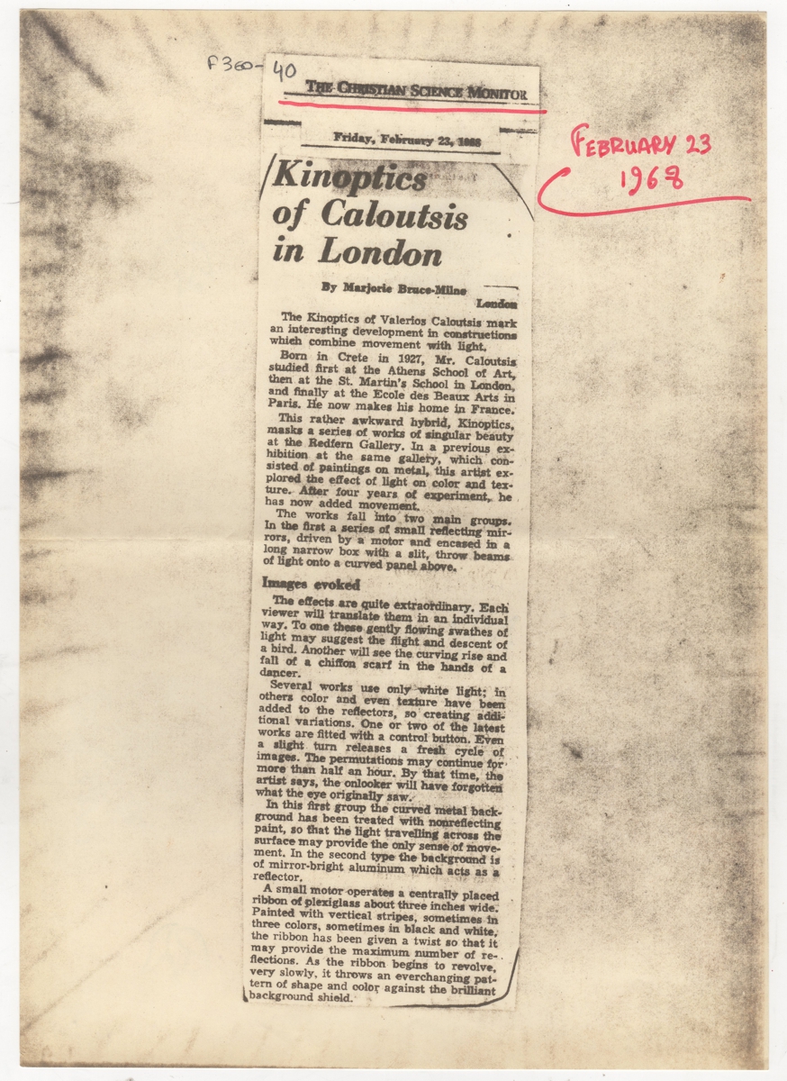 Pavlos (Dionyssopoulos) (1930 - 2019) ; Tsoclis Costas (1930) ; (Panagopoulos) Daniel (1924 - 2008) ; Takis (Vassilakis Panayiotis) (1925 - 2019) ; Valerios Kaloutsis (1927 - 2014) ; Kessanlis Nikos (1930 - 2004) ; Logothetis Stathis (1925 - 1997) ; Xenakis Constantinos (1931 - 2020)