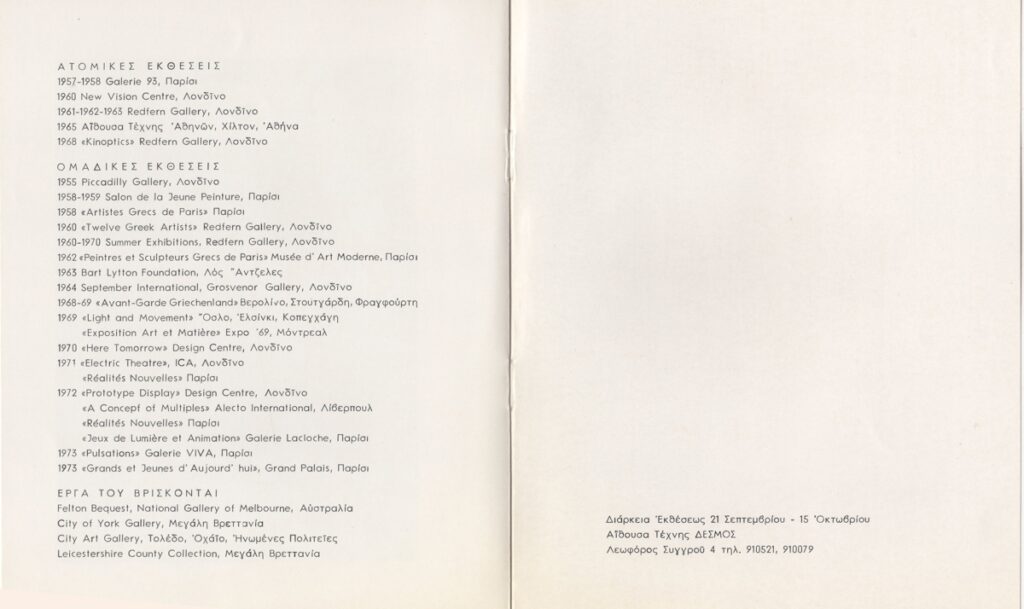 Pavlos (Dionyssopoulos) (1930 - 2019) ; Tsoclis Costas (1930) ; (Panagopoulos) Daniel (1924 - 2008) ; Takis (Vassilakis Panayiotis) (1925 - 2019) ; Valerios Kaloutsis (1927 - 2014) ; Kessanlis Nikos (1930 - 2004) ; Logothetis Stathis (1925 - 1997) ; Xenakis Constantinos (1931 - 2020)