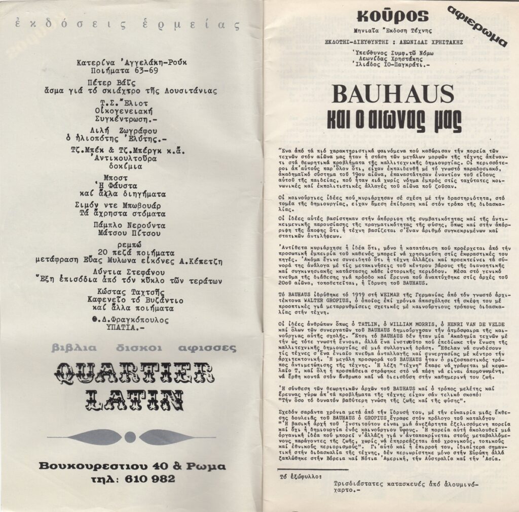 Spiteri-Veropoulou Ioanna (1920 - 2000) ; Sotiris Sorogas (1936) ; Diochanti (1945) ; Michalis Katzourakis ; Vernadaki Eleni (1933) ; Panayiotis Gravalos (1933 - 2015) ; Niki Kanagini (1933 - 2008) ; Kessanlis Nikos (1930 - 2004) ; Dimitris Kontos (1931 - 1996) ; Michas Yannis (1938 - 2008) ; Nikolaidis Giorgos (1924 - 2001) ; Λήδα Παπακωνσταντίνου-Hughes (1945) ; Χρήστος Καρράς