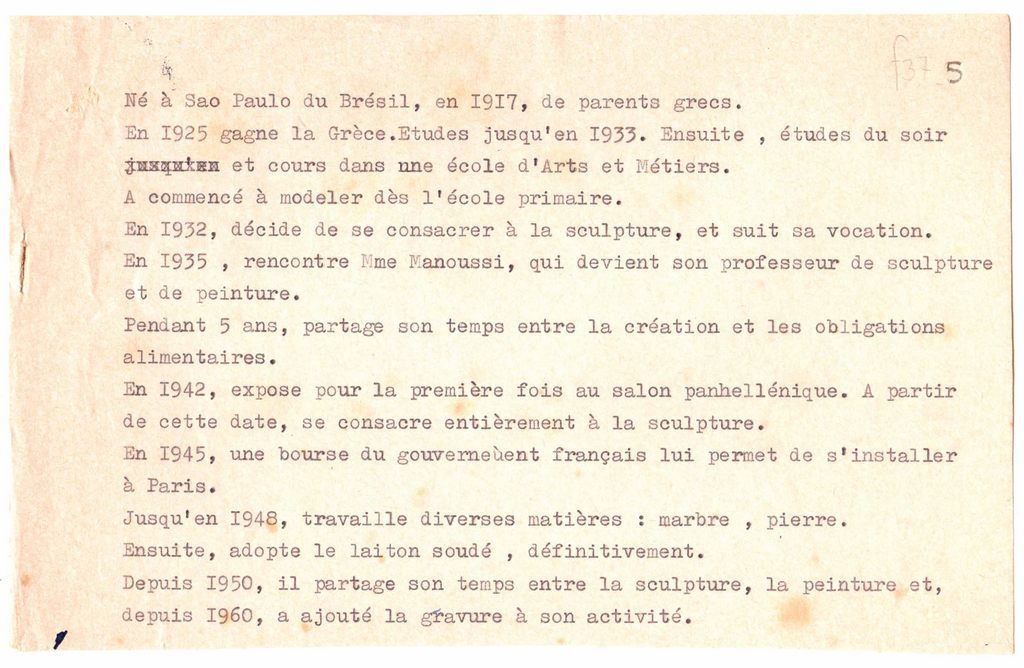 Andreou Kostas (1917 - 2007) ; Fatouros Dimitris (1928 - 2020) ; Spiteri-Veropoulou Ioanna (1920 - 2000) ; Eugène Delacroix (1798 - 1863) ; Touyas Giorgos (1922 - 1994) ; Simossi Gabriela (1926 - 1999) ; Tsoclis Costas (1930) ; Sklavos Yerassimos (1927 - 1967) ; Άγγελος Αγγελόπουλος (1904 - 1995) ; Kontopoulos Alekos (1904 - 1975) ; Mylonas Alex (1923 - 2016) ; Vyzantios Ntikos (1924 - 2007) ; Berto Lardera ; Valsamis Kostas (1908 - 2003) ; Gaitis Yannis (1923 - 1984) ; Le Corbusier (1887 - 1965) ; Georges Mathieu (1921 - 2012) ; Theodoros (Papadimitriou) (1931 - 2018) ; Takis (Vassilakis Panayiotis) (1925 - 2019) ; Victor Vasarely ; Philolaos (Tloupas) (1923 - 2010) ; Kessanlis Nikos (1930 - 2004) ; Kriezi Tita (1930 - 2021) ; Lyberaki Aglaia (1923 - 1985) ; Maltezos Yannis (1915 - 1987) ; Molfesis Iasson (1925 - 2009) ; Paniaras Kostas (1934 - 2014) ; Karras Kostas (1936 - 2012) ; Γιώργος Βαφειάδης