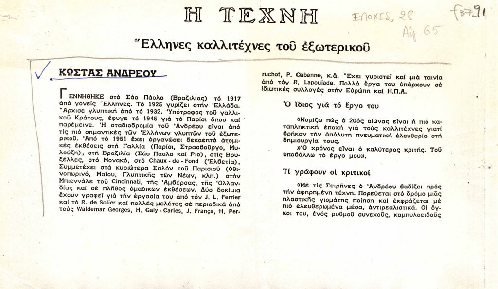 Andreou Kostas (1917 - 2007) - Artist