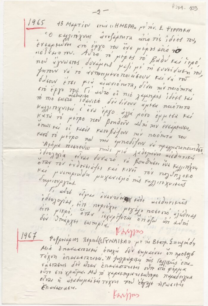 Spiteri-Veropoulou Ioanna (1920 - 2000) ; Vassiliou Spyros (1902 - 1985) ; Orestis Kanellis (1910 - 1979) ; Maggiorou Loukia (1914 - 2008) ; Tassos (Anastasios Alevizos) (1914 - 1985) ; Mitarakis Yannis (1898 - 1963) ; Asteriadis Aghinor (1898 - 1977) ; Sikeliotis Giorgos (1917 - 1984) ; Antonakatou Diana (1922 - 2011) ; Sochos Antonios (1888 - 1975) ; Bouzianis Giorgos (1885 - 1959) ; Zachariou Fotis (1909 - 2001) ; Μαρία Αναγνωστοπούλου-Βρανίκα (1890 - 1971) ; Papanoutsou Ioulia (1900 - 1973)