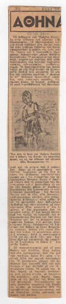 Spiteri-Veropoulou Ioanna (1920 - 2000) ; Vassiliou Spyros (1902 - 1985) ; Orestis Kanellis (1910 - 1979) ; Maggiorou Loukia (1914 - 2008) ; Tassos (Anastasios Alevizos) (1914 - 1985) ; Mitarakis Yannis (1898 - 1963) ; Asteriadis Aghinor (1898 - 1977) ; Sikeliotis Giorgos (1917 - 1984) ; Antonakatou Diana (1922 - 2011) ; Eleftheriadis Takis (1911 - 1987) ; Frantziskakis Errikos (1908 - 1958) ; Sochos Antonios (1888 - 1975) ; Bouzianis Giorgos (1885 - 1959) ; Karantinos Sokratis (1906 - 1979) ; Zachariou Fotis (1909 - 2001) ; Μαρία Αναγνωστοπούλου-Βρανίκα (1890 - 1971) ; Karagatsi Niki (1914 - 1986) ; Papanoutsou Ioulia (1900 - 1973)