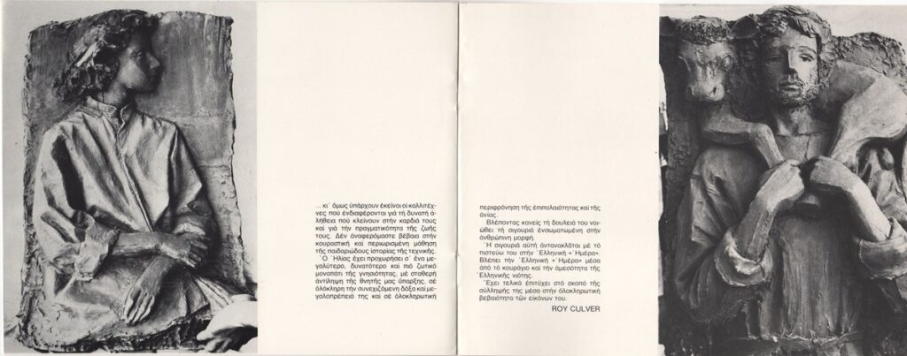 Pamphlet for the solo exhibition by Ilias Kanzilieris in Athens. It includes a brief biography of the artist and a text by Roy Culver.