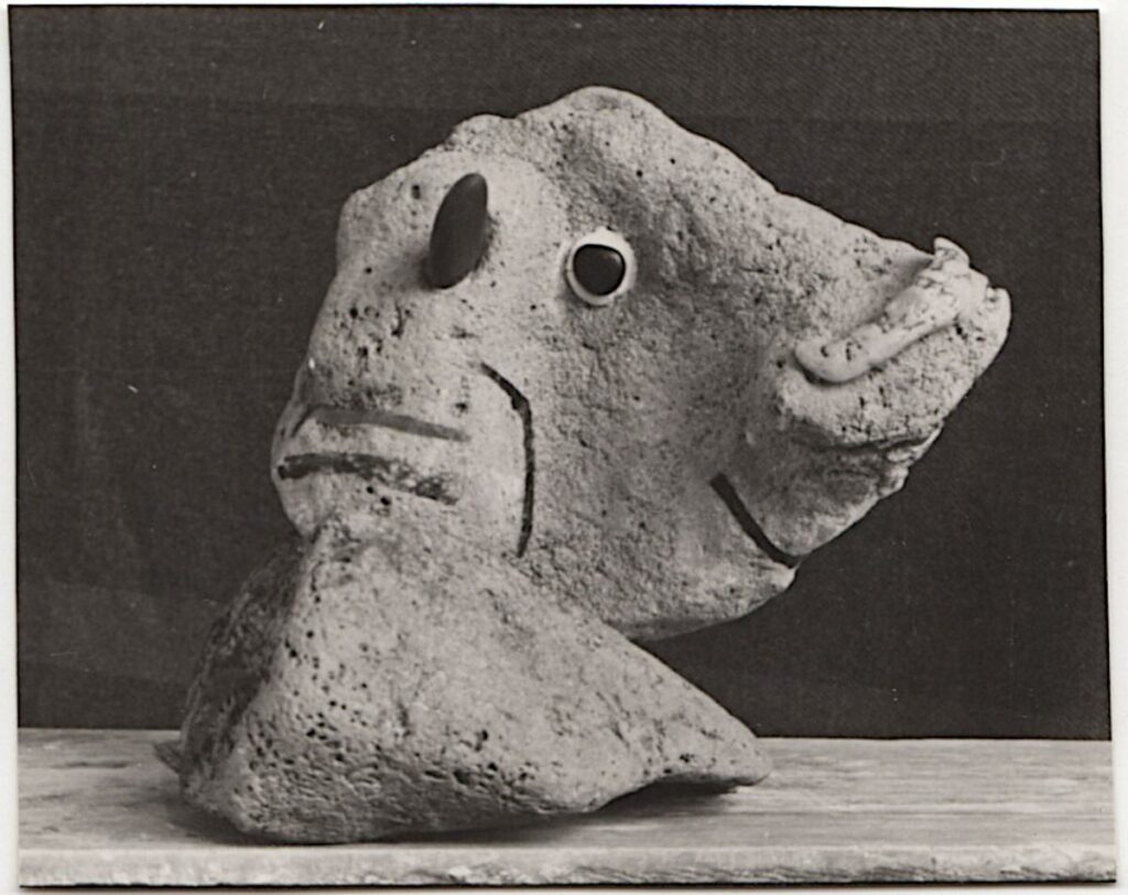 Black-and-white printed photograph of an artwork by Christos Kapralos. On the reverse, inscription.