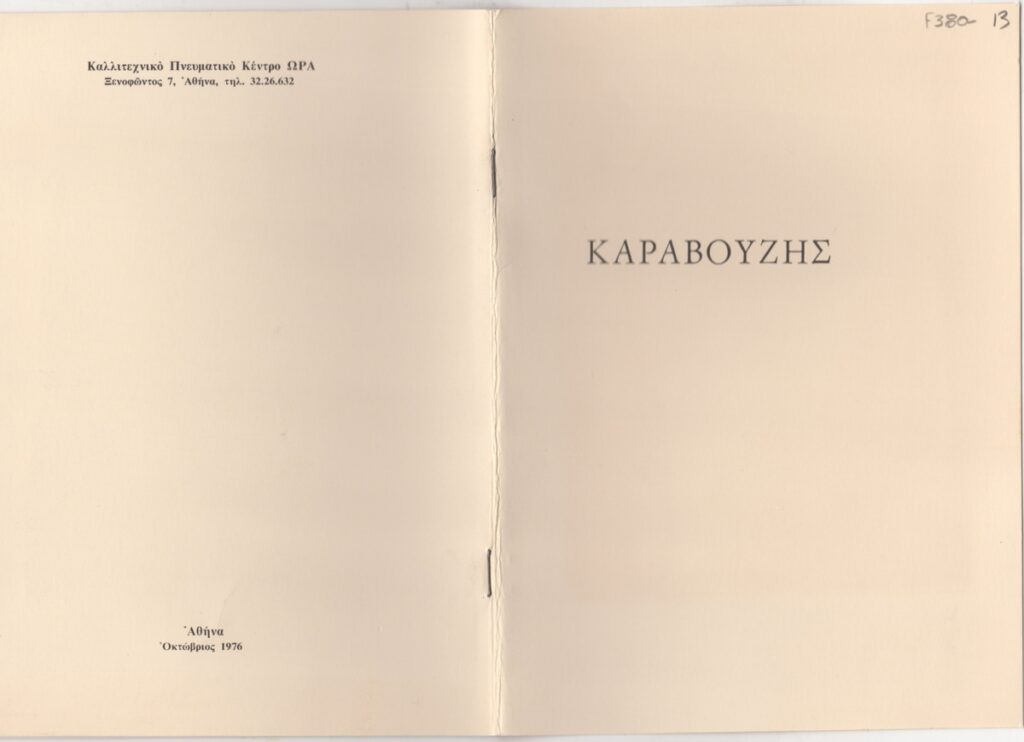 Spiteri-Veropoulou Ioanna (1920 - 2000) ; Raftopoulou, Bella (1902 - 1992) ; Δημήτρης Σακελλαρίδης (1912 - 1999) ; Christoforou, John (1921 - 2014) ; Fassianos Alekos (1935 - 2022) ; Αντώνης Καραχάλιος ; Tzolaki, Rena (1930) ; Santamouris Christos (1948) ; Angelopoulos Aristomenes (1900 - 1990) ; Fokas Yannis (1951) ; Κώστας Χαραλαμπίδης (1946) ; Pierrakos Alkis (1920 - 2017) ; Sperantzas Vasilis (1938) ; Karavouzis, Sarantis (1938 - 2011) ; Γιούλικα Λακερίδου (1940) ; Maltezos Yannis (1915 - 1987) ; Patsoglou Aristides (1941) ; Γιώργος Σκυλογιάννης ; Ελένη Κριεζή ; Behrakis George (1936) ; Δημήτρης Ράτσικας (1946) ; Pantelias, Miltos (1954) ; Harris Lambert ; Βασίλης Δωρόπουλος ; Εριέττα Βορδώνη (1959) ; Λίλη Ελευθερίου ; Κωνσταντίνος Γιαννικούρης