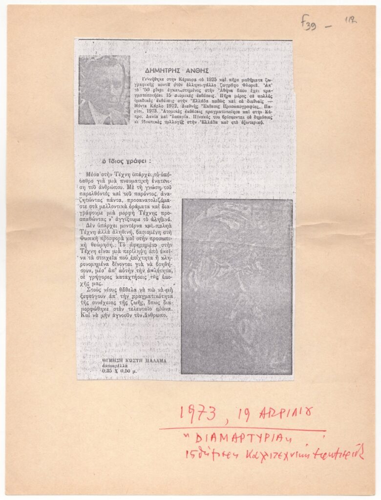 Spiteris Tonis (1910 - 1986) ; Michalis Tompros (1889 - 1974) ; Hatzikyriakos-Ghika Nikos (1906 - 1994) ; Ploritis Marios (1919 - 2006) ; Bouzianis Giorgos (1885 - 1959) ; Jean Vauthier ; Palamas Kostis (1859 - 1943) ; Lampeti Elli (1926 - 1983) ; Αχιλλέας Βαρβαρέσος (1897 - 1971) ; Κώστας Μουσούρης (1903 - 1976) ; Ελένη Χατζηαργύρη (1923 - 2004) ; Κωνσταντίνος Μακρής ; Ναυσικά Παλαμά ; Στέλλα Πέππα