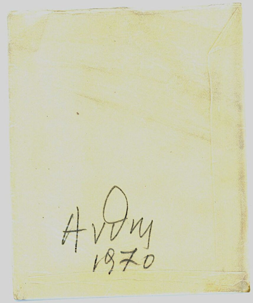 Photograph of a work by Dimitris Anthi on positive film. It is accompanied by an envelope on which a label with details of the work is visible