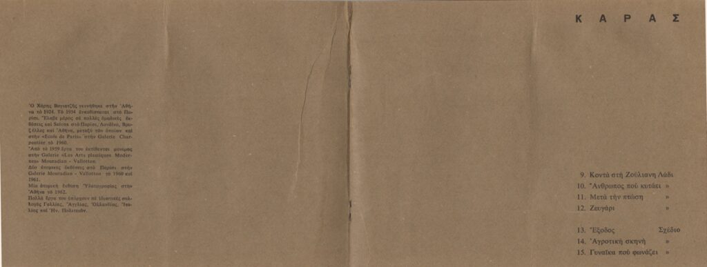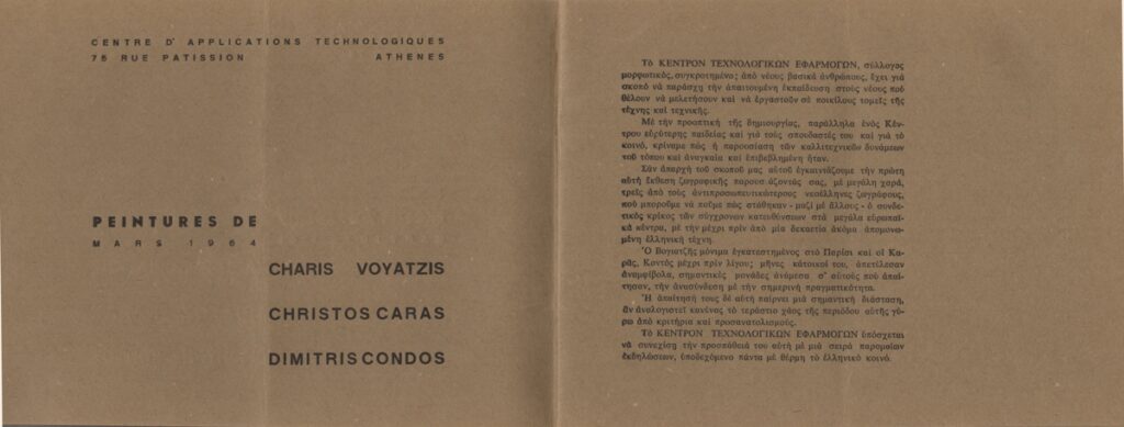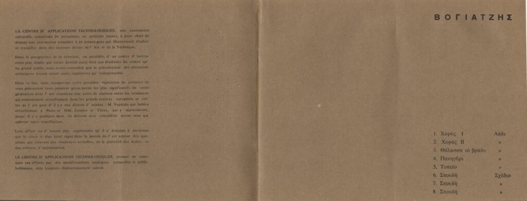 Spiteris Tonis (1910 - 1986) ; Katraki Vaso (1914 - 1988) ; Spiteri-Veropoulou Ioanna (1920 - 2000) ; José Pierre ; Michalis Katzourakis ; Fassianos Alekos (1935 - 2022) ; Simossi Gabriela (1926 - 1999) ; Tsoclis Costas (1930) ; Zouni Opy (1941 - 2008) ; Gaitis Yannis (1923 - 1984) ; Mytaras Dimitris (1934 - 2017) ; Karas Christos (1930 - 2023) ; Denis Schneider ; Vernadaki Eleni (1933) ; Takis (Vassilakis Panayiotis) (1925 - 2019) ; Sperantzas Vassilis (1938) ; Akrithakis Alexis (1939 - 1994) ; Droungas Achilleas (1940) ; Theofylaktopoulos Makis (1939 - 2023) ; Kaniaris Vlassis (1928 - 2011) ; Karavouzis Sarantis (1938 - 2011) ; Θεόδωρος Μανωλίδης (1940)