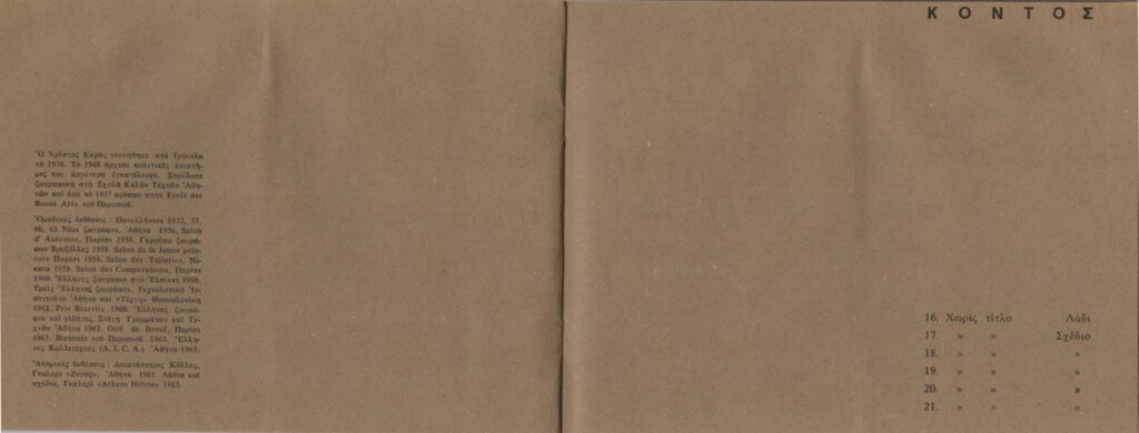 Spiteri-Veropoulou Ioanna (1920 - 2000) ; Touyas Giorgos (1922 - 1994) ; Sorogas Sotiris (1936) ; Moralis Yannis (1916 - 2009) ; Michalis Katzourakis ; Zongolopoulou Eleni (1909 - 1993) ; Simossi Gabriela (1926 - 1999) ; Constantinou Dimitris (1924 - 2010) ; Zouni Opy (1941 - 2008) ; Zongopoulos Giorgos (1903 - 2004) ; (Panagopoulos) Daniel (1924 - 2008) ; Dekoulakos Ilias (1929 - 1998) ; Karas Christos (1930 - 2023) ; Vernadaki Eleni (1933) ; Kampouridis Charis (1950) ; Apergis Antonis (1938 - 2018) ; Gravalos Panayiotis (1933 - 2015) ; Droungas Achilleas (1940) ; Kanagini Niki (1933 - 2008) ; Karachalios Kostas (1923 - 2007) ; Καίτη Αντύπα (1925 - 2006) ; Kessanlis Nikos (1930 - 2004) ; Kontos Dimitris (1931 - 1996) ; Eirini Apergi (1921 - 1994) ; Loucopoulos, Clearchos (1906 - 1995) ; Pastra Nausica (1921 - 2011) ; Κώστας Βαρώτσος (1955)