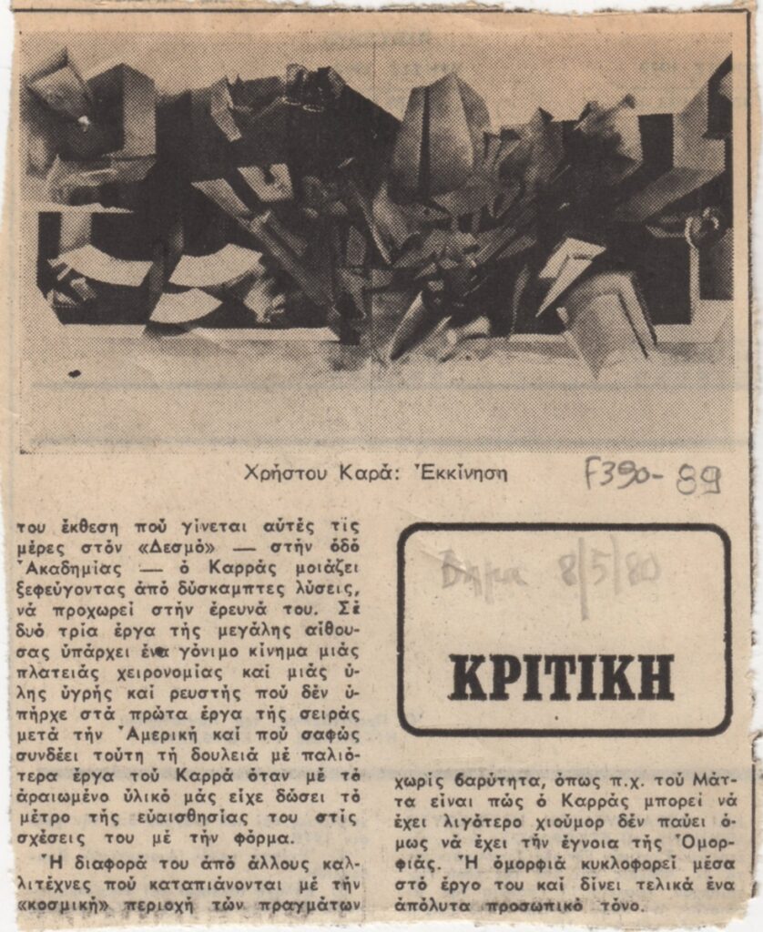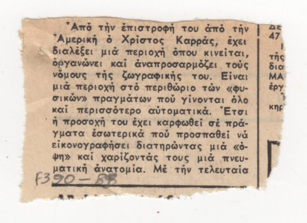 Spiteris Tonis (1910 - 1986) ; Katraki Vaso (1914 - 1988) ; Spiteri-Veropoulou Ioanna (1920 - 2000) ; José Pierre ; Michalis Katzourakis ; Fassianos Alekos (1935 - 2022) ; Simossi Gabriela (1926 - 1999) ; Tsoclis Costas (1930) ; Opy Zouni (1941 - 2008) ; Gaitis Yannis (1923 - 1984) ; Mytaras Dimitris (1934 - 2017) ; Karas Christos (1930 - 2023) ; Denis Schneider ; Vernadaki Eleni (1933) ; Takis (Vassilakis Panayiotis) (1925 - 2019) ; Sperantzas Vassilis (1938) ; Alexis Akrithakis (1939 - 1994) ; Achilleas Droungas (1940) ; Theofylaktopoulos Makis (1939 - 2023) ; Kaniaris Vlassis (1928 - 2011) ; Karavouzis Sarantis (1938 - 2011) ; Θεόδωρος Μανωλίδης (1940)