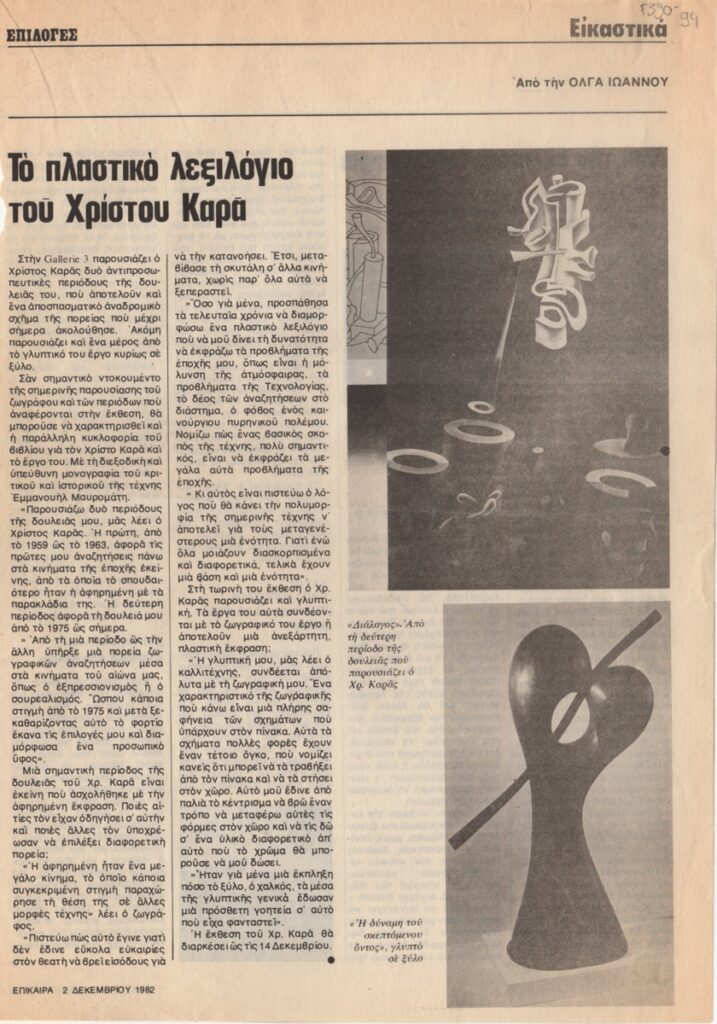 Spiteris Tonis (1910 - 1986) ; Katraki Vaso (1914 - 1988) ; Spiteri-Veropoulou Ioanna (1920 - 2000) ; José Pierre ; Michalis Katzourakis ; Fassianos Alekos (1935 - 2022) ; Simossi Gabriela (1926 - 1999) ; Tsoclis Costas (1930) ; Opy Zouni (1941 - 2008) ; Gaitis Yannis (1923 - 1984) ; Mytaras Dimitris (1934 - 2017) ; Karas Christos (1930 - 2023) ; Denis Schneider ; Vernadaki Eleni (1933) ; Takis (Vassilakis Panayiotis) (1925 - 2019) ; Sperantzas Vassilis (1938) ; Alexis Akrithakis (1939 - 1994) ; Achilleas Droungas (1940) ; Theofylaktopoulos Makis (1939 - 2023) ; Kaniaris Vlassis (1928 - 2011) ; Karavouzis Sarantis (1938 - 2011) ; Θεόδωρος Μανωλίδης (1940)