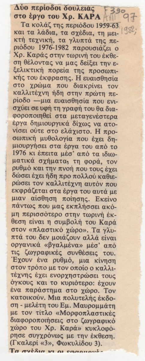 Spiteris Tonis (1910 - 1986) ; Katraki Vaso (1914 - 1988) ; Spiteri-Veropoulou Ioanna (1920 - 2000) ; José Pierre ; Michalis Katzourakis ; Fassianos Alekos (1935 - 2022) ; Simossi Gabriela (1926 - 1999) ; Tsoclis Costas (1930) ; Opy Zouni (1941 - 2008) ; Gaitis Yannis (1923 - 1984) ; Mytaras Dimitris (1934 - 2017) ; Karas Christos (1930 - 2023) ; Denis Schneider ; Vernadaki Eleni (1933) ; Takis (Vassilakis Panayiotis) (1925 - 2019) ; Sperantzas Vassilis (1938) ; Alexis Akrithakis (1939 - 1994) ; Achilleas Droungas (1940) ; Theofylaktopoulos Makis (1939 - 2023) ; Kaniaris Vlassis (1928 - 2011) ; Karavouzis Sarantis (1938 - 2011) ; Θεόδωρος Μανωλίδης (1940)
