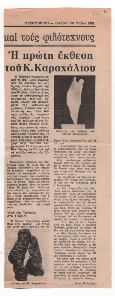 Spiteri-Veropoulou Ioanna (1920 - 2000) ; Giorgos Touyas (1922 - 1994) ; Sotiris Sorogas (1936) ; Moralis Yannis (1916 - 2009) ; Michalis Katzourakis ; Eleni Zongolopoulou (1909 - 1993) ; Simossi Gabriela (1926 - 1999) ; Dimitris Constantinou (1924 - 2010) ; Opy Zouni (1941 - 2008) ; Zongopoulos Giorgos (1903 - 2004) ; (Panagopoulos) Daniel (1924 - 2008) ; Ilias Dekoulakos (1929 - 1998) ; Karas Christos (1930 - 2023) ; Vernadaki Eleni (1933) ; Kampouridis Charis (1950) ; Apergis Antonis (1938 - 2018) ; Panayiotis Gravalos (1933 - 2015) ; Achilleas Droungas (1940) ; Niki Kanagini (1933 - 2008) ; Kostas Karachalios (1923 - 2007) ; Καίτη Αντύπα (1925 - 2006) ; Kessanlis Nikos (1930 - 2004) ; Dimitris Kontos (1931 - 1996) ; Eirini Apergi (1921 - 1994) ; Loucopoulos, Clearchos (1906 - 1995) ; Nausica Pastra (1921 - 2011) ; Κώστας Βαρώτσος (1955)