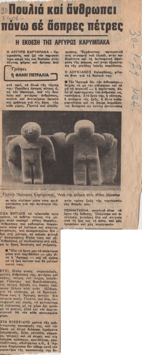 Spiteri-Veropoulou Ioanna (1920 - 2000) ; Thymios Panourgias (1931 - 2015) ; Chalepa-Katsatou Katerina (1925 - 2004) ; Χρήστος Γεωργίου ; Argyro Karympaka-Negreponti (1929) ; Ledaki Maria (1932) ; Μάριος Λοβέρδος ; Σωσώ Παπαδοπεράκη ; Christos Riganas (1944) ; Αμαλία Βαμβάκου (1925 - 2014) ; Κώστας Δομπούλας ; Fanakidis Apostolos (1945) ; Αλίκη Χατζή (1923 - 1997) ; Ελένη Αποστολοπούλου (1943) ; Νικόλαος Δογούλης ; Βασιλική Γρουσοπούλου-Μαρκούση (1938) ; Κολέτ Δάρρα (1942) ; Γιώργος Χουλιαράς, εικαστικός (1947)