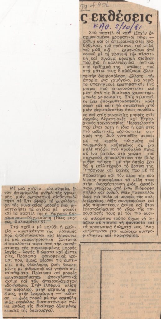Spiteri-Veropoulou Ioanna (1920 - 2000) ; Thymios Panourgias (1931 - 2015) ; Chalepa-Katsatou Katerina (1925 - 2004) ; Χρήστος Γεωργίου ; Argyro Karympaka-Negreponti (1929) ; Ledaki Maria (1932) ; Μάριος Λοβέρδος ; Σωσώ Παπαδοπεράκη ; Christos Riganas (1944) ; Αμαλία Βαμβάκου (1925 - 2014) ; Κώστας Δομπούλας ; Fanakidis Apostolos (1945) ; Αλίκη Χατζή (1923 - 1997) ; Ελένη Αποστολοπούλου (1943) ; Νικόλαος Δογούλης ; Βασιλική Γρουσοπούλου-Μαρκούση (1938) ; Κολέτ Δάρρα (1942) ; Γιώργος Χουλιαράς, εικαστικός (1947)