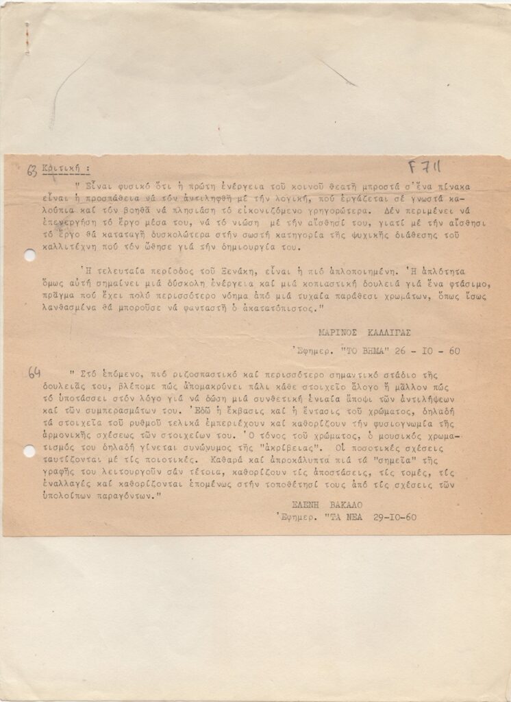 Katraki Vaso (1914 - 1988) ; Spiteri-Veropoulou Ioanna (1920 - 2000) ; Valsamakis Panos (1900 - 1986) ; Vassiliou Spyros (1902 - 1985) ; Eleni Vakalo (1921 - 2001) ; Kalligas Marinos (1906 - 1985) ; Christos Kapralos (1909 - 1993) ; Σπύρος Παναγιωτόπουλος (1894 - 1987) ; Efi Ferentinou (1915 - 1979) ; Tetsis Panagiotis (1925 - 2016) ; Nikos Nikolaou (1909 - 1986) ; Pappas Giannis (1913 - 2005) ; Alexandros Korogiannakis (1906 - 1966) ; Γιώργος Φωκάς