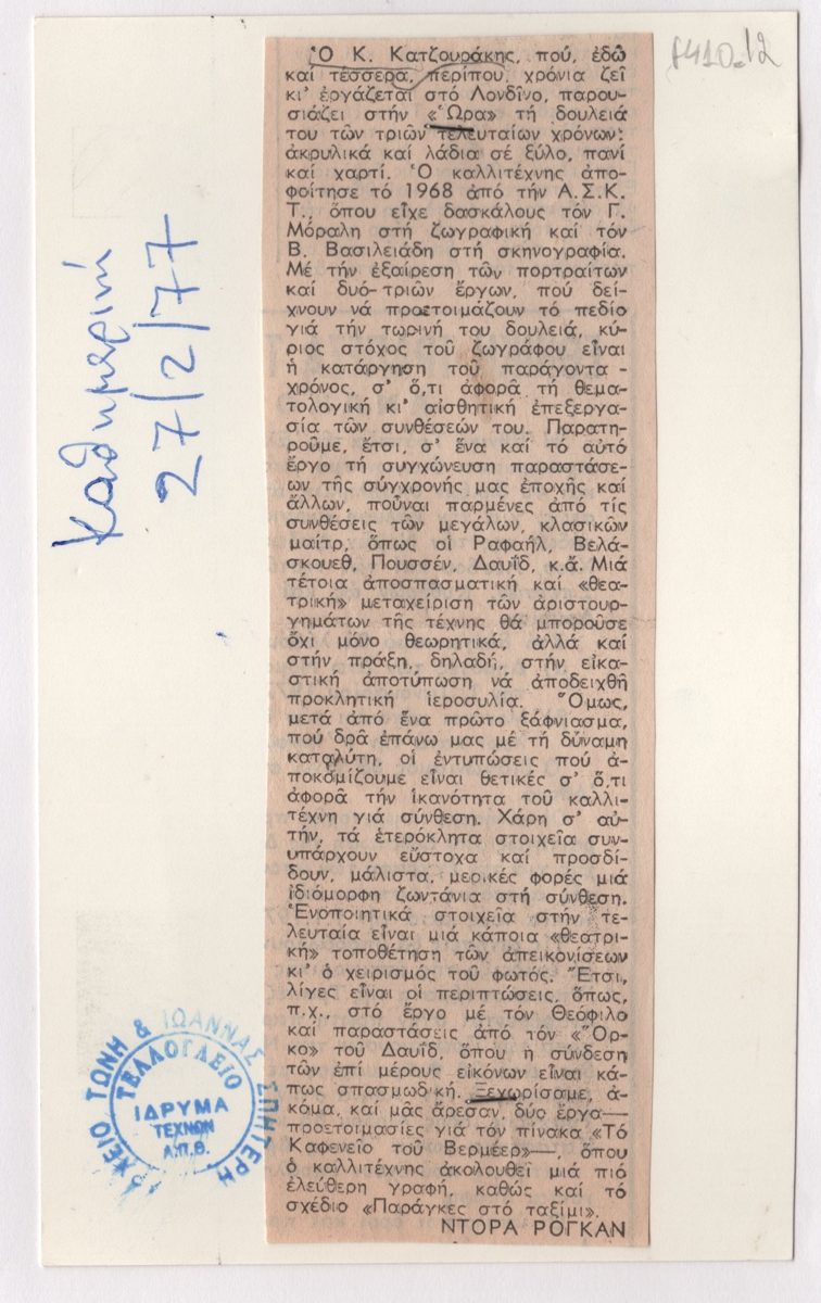 Katzourakis Kyriakos (1944 - 2021) - Article writer