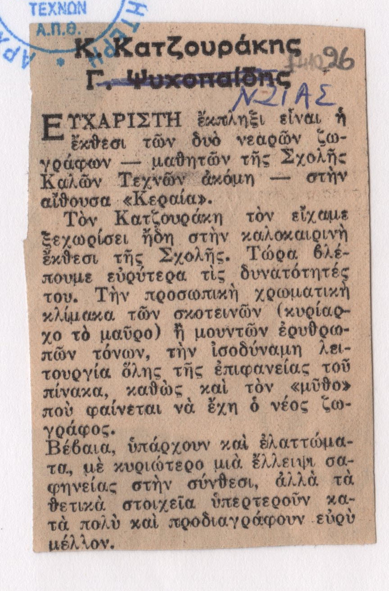 Zias Nikos (1939) ; Prokopiou Angelos G. (1909 - 1967) ; Eleni Vakalo (1921 - 2001) ; Chatzikyriakos-Gkikas Nikos (1906 - 1994) ; Antonakatou Diana (1922 - 2011) ; Mylonas Alex (1923 - 2016) ; Κώστας Νικολάου