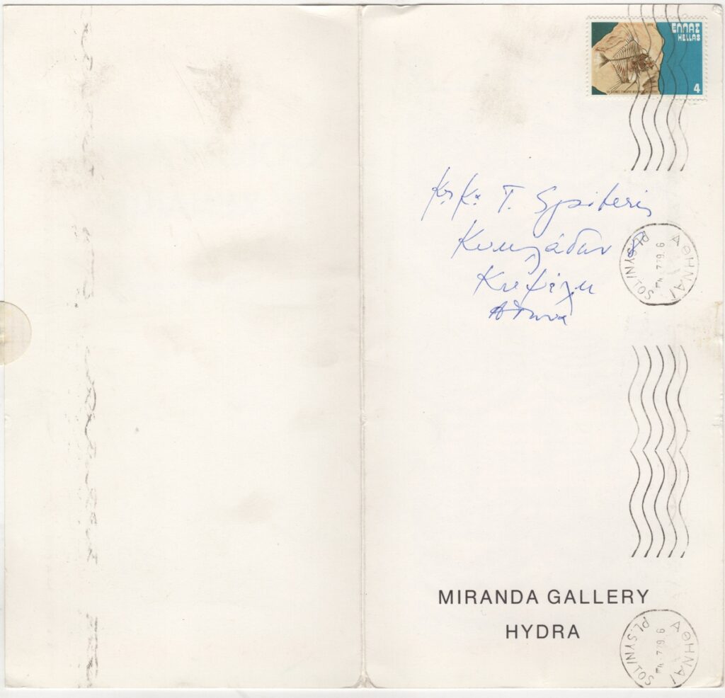 Andreou Kostas (1917 - 2007) ; Fatouros Dimitris (1928 - 2020) ; Spiteri-Veropoulou Ioanna (1920 - 2000) ; Eugène Delacroix (1798 - 1863) ; Touyas Giorgos (1922 - 1994) ; Simossi Gabriela (1926 - 1999) ; Tsoclis Costas (1930) ; Sklavos Yerassimos (1927 - 1967) ; Άγγελος Αγγελόπουλος (1904 - 1995) ; Kontopoulos Alekos (1904 - 1975) ; Mylonas Alex (1923 - 2016) ; Vyzantios Ntikos (1924 - 2007) ; Berto Lardera ; Valsamis Kostas (1908 - 2003) ; Gaitis Yannis (1923 - 1984) ; Le Corbusier (1887 - 1965) ; Georges Mathieu (1921 - 2012) ; Theodoros (Papadimitriou) (1931 - 2018) ; Takis (Vassilakis Panayiotis) (1925 - 2019) ; Victor Vasarely ; Philolaos (Tloupas) (1923 - 2010) ; Kessanlis Nikos (1930 - 2004) ; Kriezi Tita (1930 - 2021) ; Lyberaki Aglaia (1923 - 1985) ; Maltezos Yannis (1915 - 1987) ; Molfesis Iasson (1925 - 2009) ; Paniaras Kostas (1934 - 2014) ; Karras Kostas (1936 - 2012) ; Γιώργος Βαφειάδης