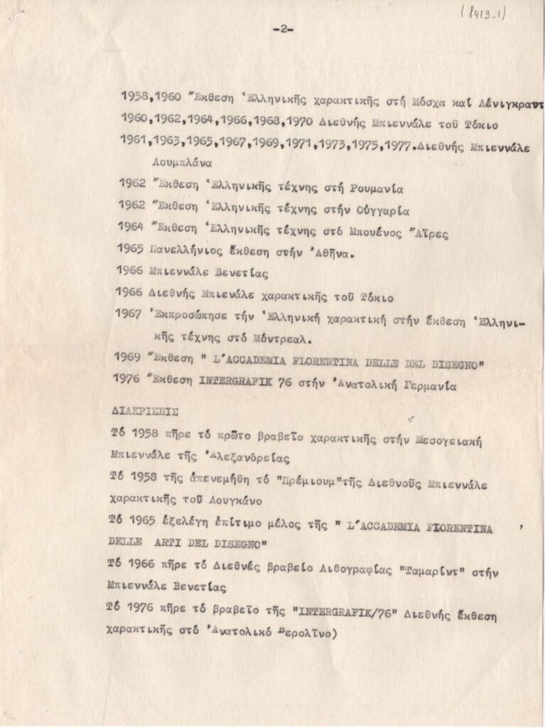 Spiteris Tonis (1910 - 1986) ; Katraki Vaso (1914 - 1988) ; Spiteri-Veropoulou Ioanna (1920 - 2000) ; José Pierre ; Michalis Katzourakis ; Fassianos Alekos (1935 - 2022) ; Simossi Gabriela (1926 - 1999) ; Tsoclis Costas (1930) ; Zouni Opy (1941 - 2008) ; Gaitis Yannis (1923 - 1984) ; Mytaras Dimitris (1934 - 2017) ; Karas Christos (1930 - 2023) ; Denis Schneider ; Vernadaki Eleni (1933) ; Takis (Vassilakis Panayiotis) (1925 - 2019) ; Sperantzas Vassilis (1938) ; Alexis Akrithakis (1939 - 1994) ; Droungas Achilleas (1940) ; Theofylaktopoulos Makis (1939 - 2023) ; Kaniaris Vlassis (1928 - 2011) ; Karavouzis Sarantis (1938 - 2011) ; Θεόδωρος Μανωλίδης (1940)