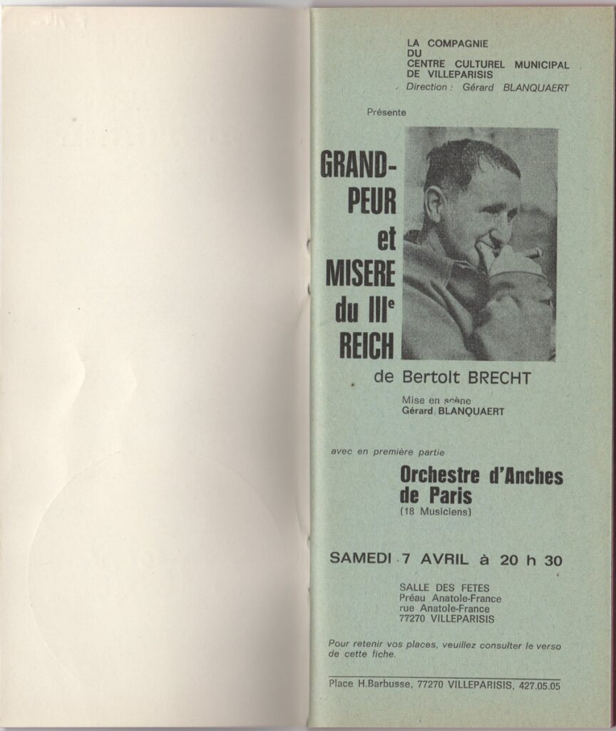 Jacques Thuillier ; Xenos Theo (1939) ; Claude Reva ; Evelyne Dress ; Rene Bourdet ; Noel Morales ; Pedro Jose Ibanez ; Antony Big Band ; Steve Potts ; Steve Lacy ; Georges Arvanitas (1931 - 2005) ; Frank Wright ; Pharoah Sanders ; Muhammad Ali ; François Tusques ; Carlos Roque Alsina (1941) ; Vinko Globokar ; Wilmann Florencie ; J. P. Drouet ; B. Sylvestre ; H. Agnel ; Jenny J. F. Clarke
