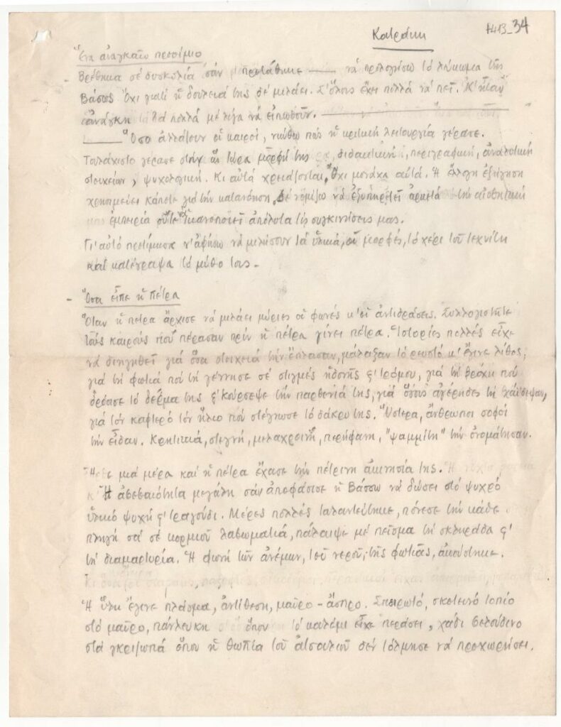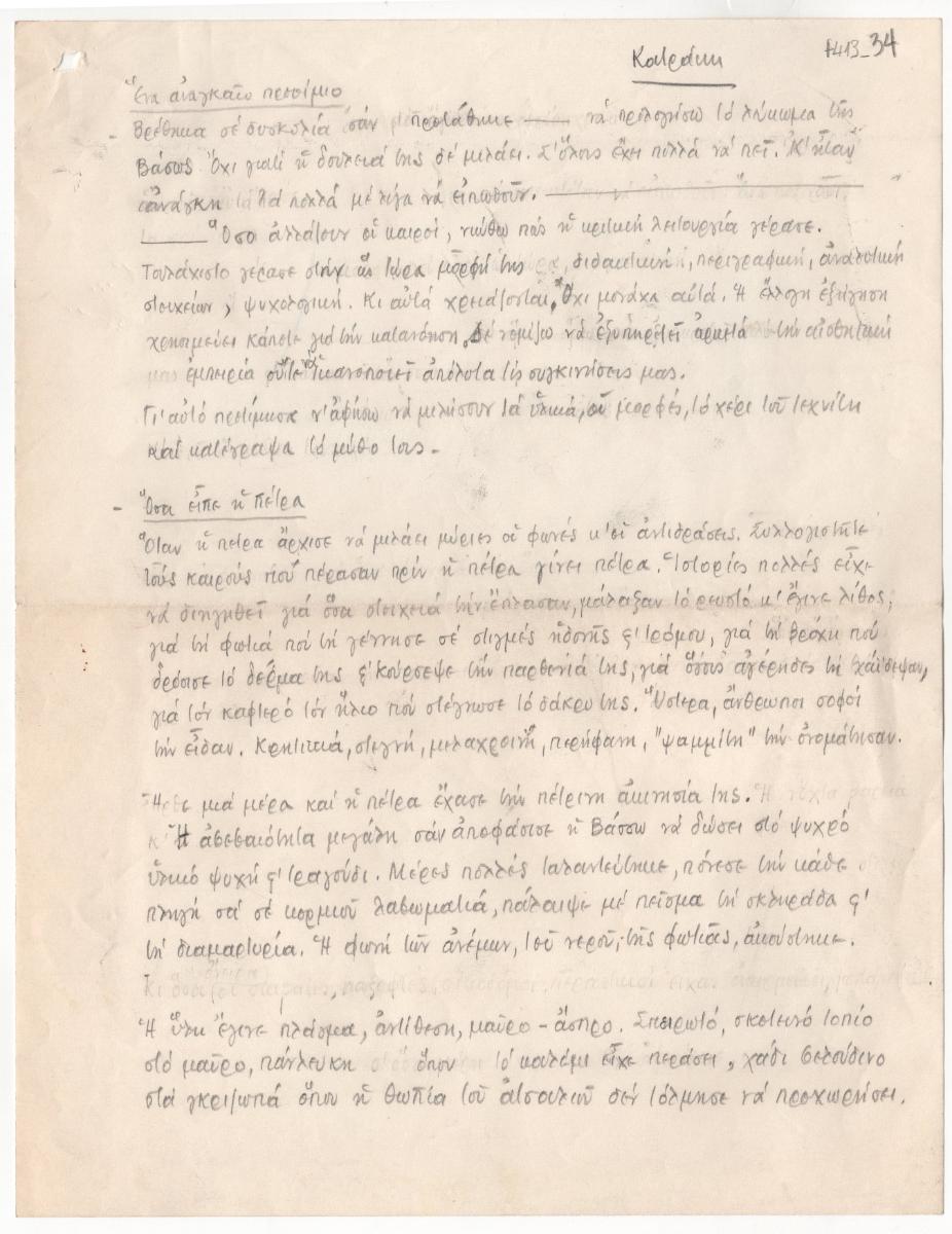 Manuscript of a text by Tonis Spiteris about the engraver Vaso Katraki and her work.