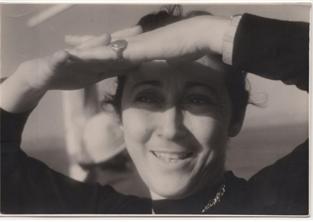 Black-and-white printed photograph of Vasso Katraki.