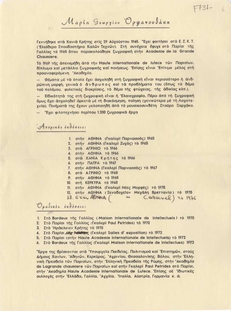 Meletzis Spyros (1906 - 2003) ; Anoyanakis Fivos (1915 - 2003) ; Daniil Daniil (1934) ; Μαρία Ορφανουδάκη ; Κατερίνα Κουλελή ; Φρανσίσκο Κουλελής ; Τάκης Κοτό ; Λούη Πασαλάρη - Σηλυβρίδου