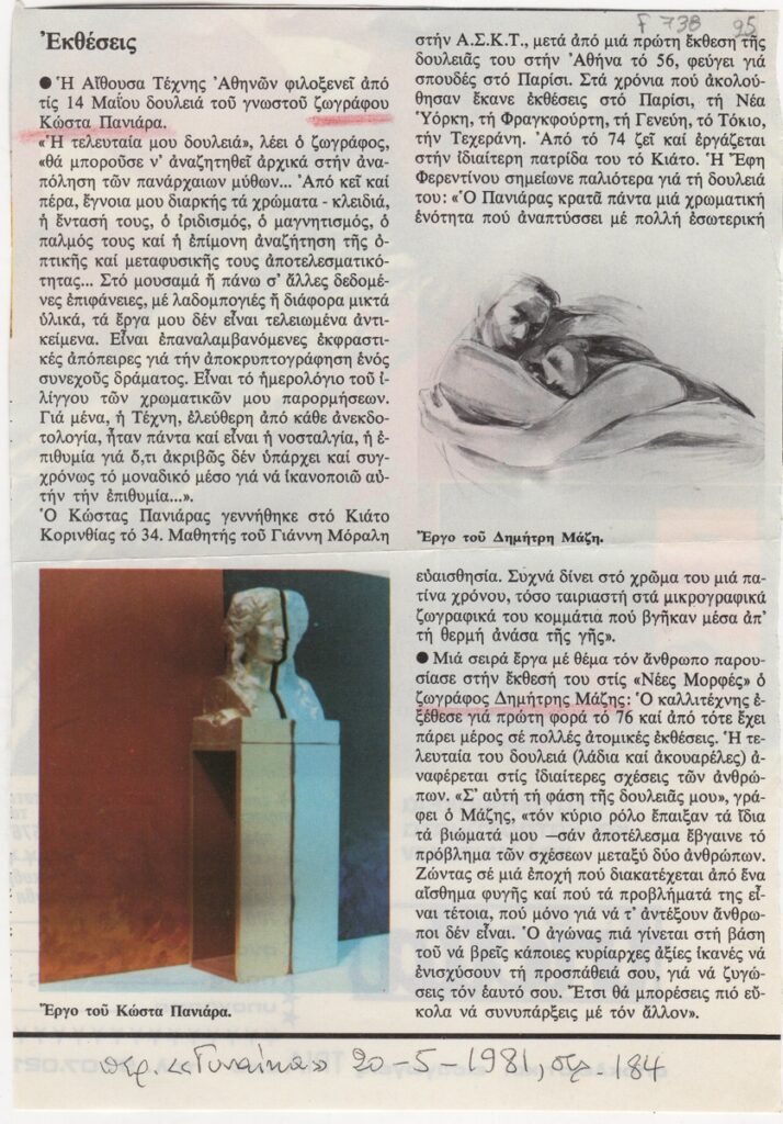 Andreou Kostas (1917 - 2007) ; Fatouros Dimitris (1928 - 2020) ; Spiteri-Veropoulou Ioanna (1920 - 2000) ; Eugène Delacroix (1798 - 1863) ; Touyas Giorgos (1922 - 1994) ; Simossi Gabriela (1926 - 1999) ; Tsoclis Costas (1930) ; Sklavos Yerassimos (1927 - 1967) ; Άγγελος Αγγελόπουλος (1904 - 1995) ; Kontopoulos Alekos (1904 - 1975) ; Mylonas Alex (1923 - 2016) ; Vyzantios Ntikos (1924 - 2007) ; Berto Lardera ; Valsamis Kostas (1908 - 2003) ; Gaitis Yannis (1923 - 1984) ; Le Corbusier (1887 - 1965) ; Georges Mathieu (1921 - 2012) ; Theodoros (Papadimitriou) (1931 - 2018) ; Takis (Vassilakis Panayiotis) (1925 - 2019) ; Victor Vasarely ; Philolaos (Tloupas) (1923 - 2010) ; Kessanlis Nikos (1930 - 2004) ; Kriezi Tita (1930 - 2021) ; Lyberaki Aglaia (1923 - 1985) ; Maltezos Yannis (1915 - 1987) ; Molfesis Iasson (1925 - 2009) ; Paniaras Kostas (1934 - 2014) ; Karras Kostas (1936 - 2012) ; Γιώργος Βαφειάδης