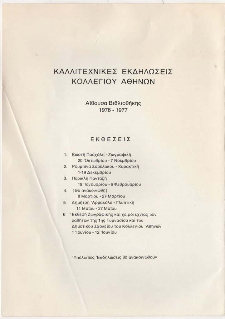Spiteri-Veropoulou Ioanna (1920 - 2000) ; Kyriakos Rokos (1945) ; Kostas Koulentianos (1918 - 1995) ; Takis (Vassilakis Panayiotis) (1925 - 2019) ; Theodoros Papagiannis (1942) ; Loucopoulos, Clearchos (1906 - 1995) ; Armakolas Dimitris (1939 - 2009) ; Nikolaidis Giorgos (1924 - 2001) ; Fanakidis Apostolos (1945)