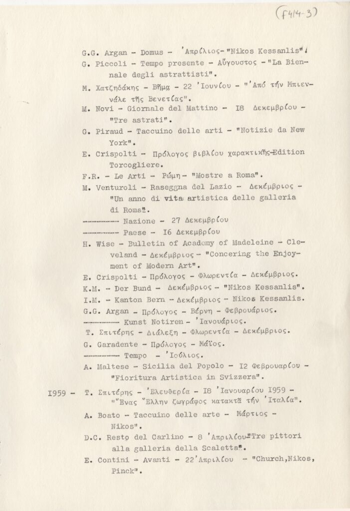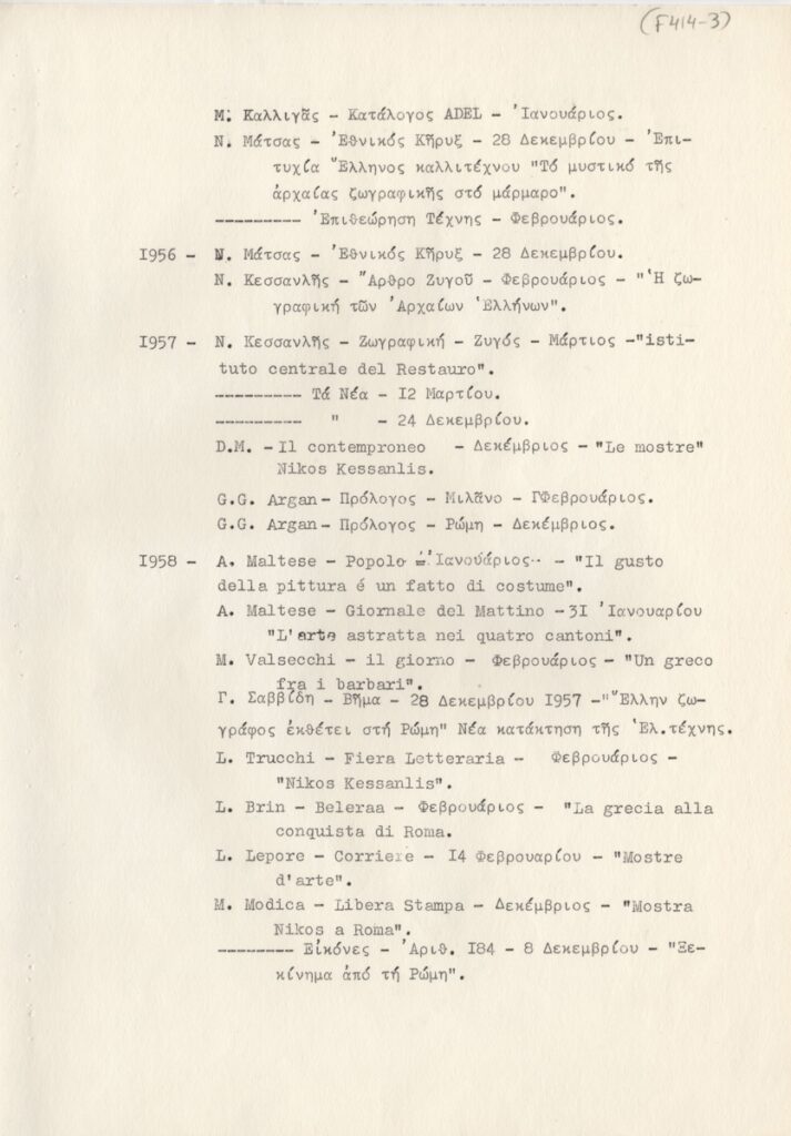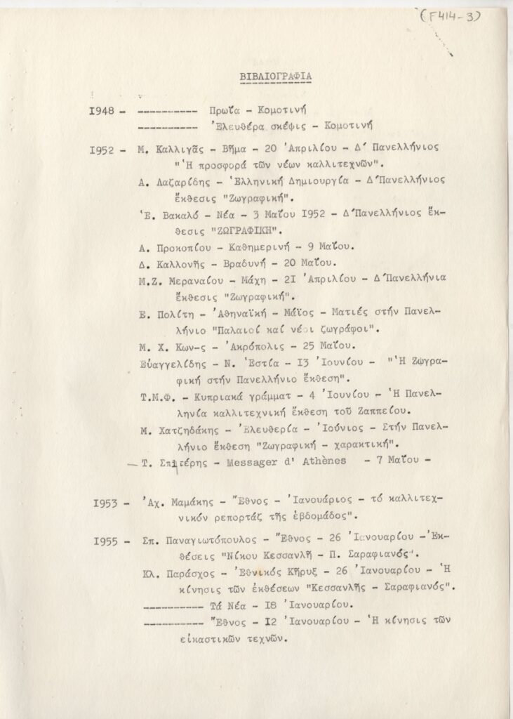 Spiteri-Veropoulou Ioanna (1920 - 2000) ; Andreadi Efi (20th century) ; Touyas Giorgos (1922 - 1994) ; Sotiris Sorogas (1936) ; Diochanti (1945) ; Romanos Chryssa (1931 - 2006) ; Zongopoulos Giorgos (1903 - 2004) ; Achilleas Aperghis (1909 - 1986) ; Xagoraris Pandelis (1929 - 2000) ; Ilias Dekoulakos (1929 - 1998) ; Vernadaki Eleni (1933) ; Niki Kanagini (1933 - 2008) ; Kessanlis Nikos (1930 - 2004) ; Loucopoulos, Clearchos (1906 - 1995) ; Bouteas Yannis (1941 - 2026) ; Bia Davou (1932 - 1996)