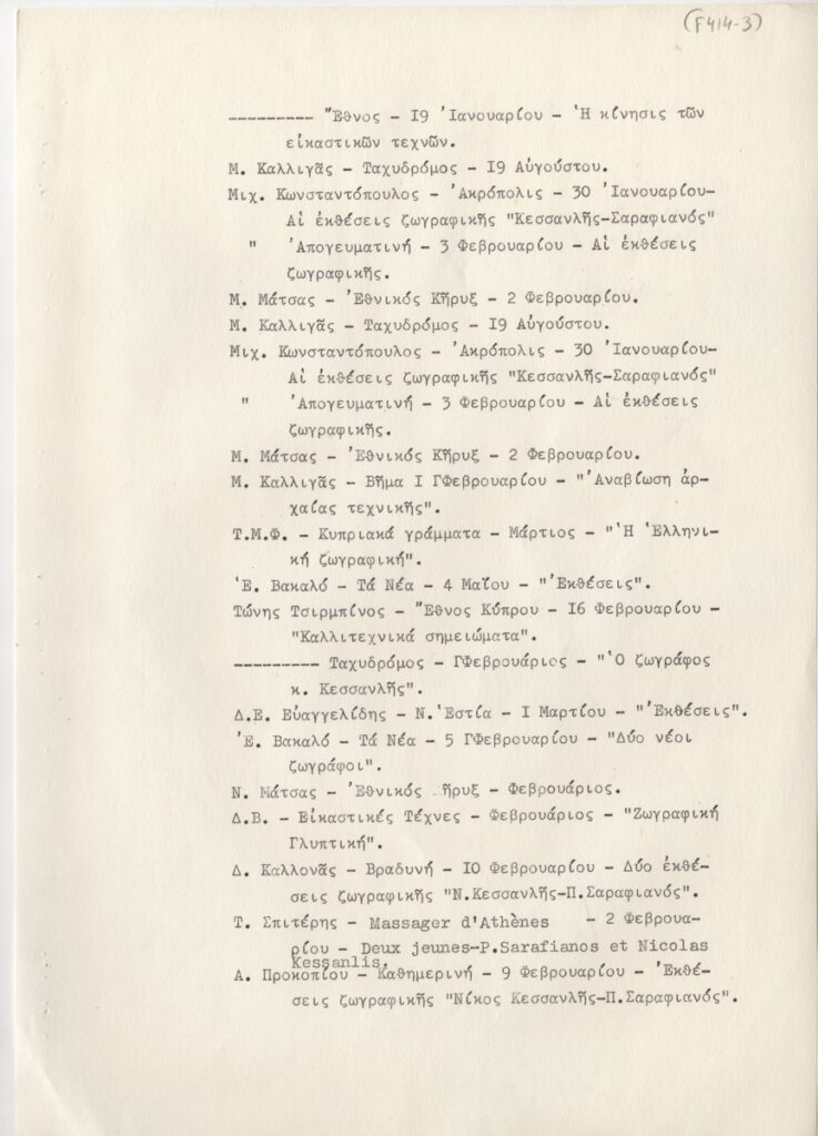 Spiteri-Veropoulou Ioanna (1920 - 2000) ; Touyas Giorgos (1922 - 1994) ; Sotiris Sorogas (1936) ; Moralis Yannis (1916 - 2009) ; Michalis Katzourakis ; Eleni Zongolopoulou (1909 - 1993) ; Simossi Gabriela (1926 - 1999) ; Dimitris Constantinou (1924 - 2010) ; Opy Zouni (1941 - 2008) ; Zongopoulos Giorgos (1903 - 2004) ; (Panagopoulos) Daniel (1924 - 2008) ; Ilias Dekoulakos (1929 - 1998) ; Karas Christos (1930 - 2023) ; Vernadaki Eleni (1933) ; Kampouridis Charis (1950) ; Apergis Antonis (1938 - 2018) ; Panayiotis Gravalos (1933 - 2015) ; Achilleas Droungas (1940) ; Niki Kanagini (1933 - 2008) ; Kostas Karachalios (1923 - 2007) ; Καίτη Αντύπα (1925 - 2006) ; Kessanlis Nikos (1930 - 2004) ; Dimitris Kontos (1931 - 1996) ; Eirini Apergi (1921 - 1994) ; Loucopoulos, Clearchos (1906 - 1995) ; Pastra Nausica (1921 - 2011) ; Κώστας Βαρώτσος (1955)
