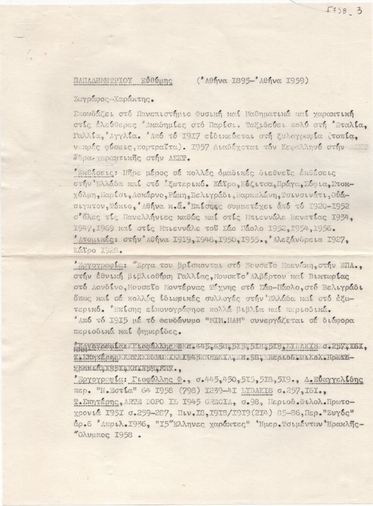 Spiteris Tonis (1910 - 1986) ; Michalis Tompros (1889 - 1974) ; Prokopiou Angelos G. (1909 - 1967) ; Marthas Takis (1905 - 1965) ; Tassos (Anastasios Alevizos) (1914 - 1985) ; Konstantopoulos Michail (20th century) ; Mamakis Achilleas (? - 1966) (1906 - 1966) ; Papadimitriou Efthymios (1895 - 1958) ; Korogiannakis Alexandros (1906 - 1966) ; Moschos Georgios (1906 - 1990) ; Manou Rallou (1915 - 1988) ; Αθηνά Λοράνδου