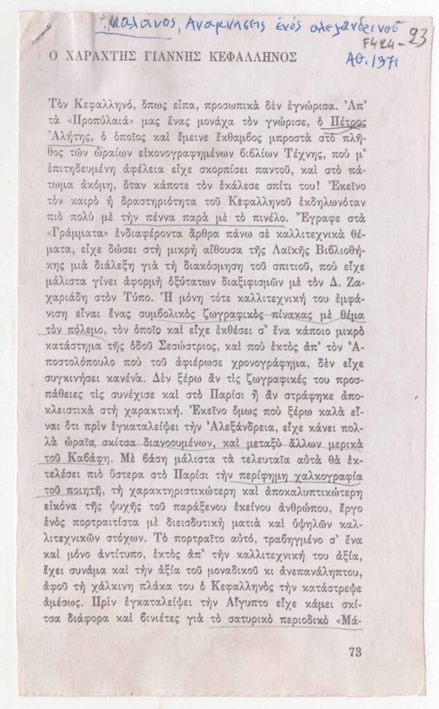 Parthenis Konstantinos (1878 - 1967) ; Prevelakis Pantelis (1909 - 1986) ; Kefallinos, Yannis (1894 - 1957) ; Γεώργιος Π. Κουρνούτος ; Δημήτριος Μπισκίνης ; Louvaris Nikolaos (1887 - 1961) ; Κώστας Πάγκαλος