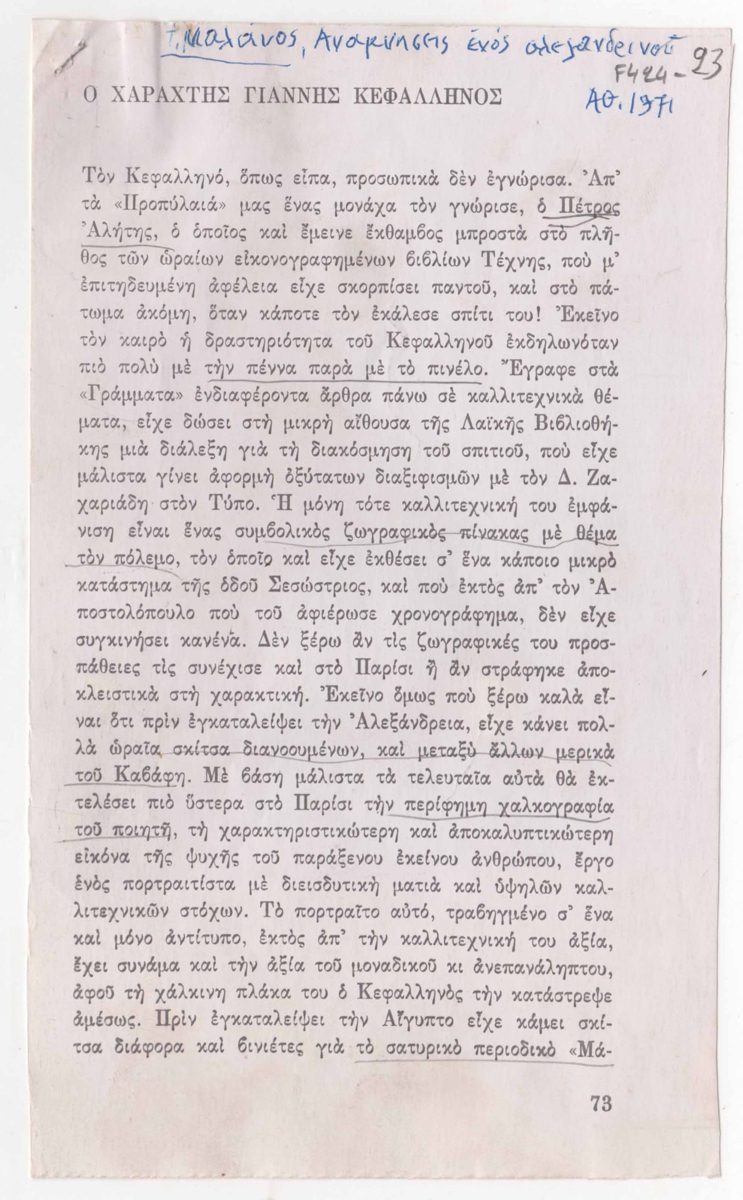 Μαλάνος, Τίμος, Αναμνήσεις ενός Αλεξανδρινού, Αθήνα, 1971.