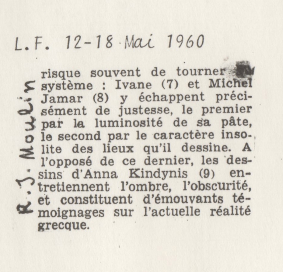 Spiteris Tonis (1910 - 1986) ; Michalis Tompros (1889 - 1974) ; Michel Conil-Lacoste ; Prokopiou Angelos G. (1909 - 1967) ; Moulin Raoul-Jean (1934 - 2014) ; Chatzidakis Manolis (1909 - 1998) ; Hoctin, Luce (1916 - 2015) ; Eleni Vakalo (1921 - 2001) ; Σπύρος Παναγιωτόπουλος (1894 - 1987) ; Nestoras Matsas (1935 - 2012) ; Zongopoulos Giorgos (1903 - 2004) ; Mylonas Alex (1923 - 2016) ; Έλλη Κ. Πολίτη ; Elgar Frank (1899 - 1978) ; Charles Sriber