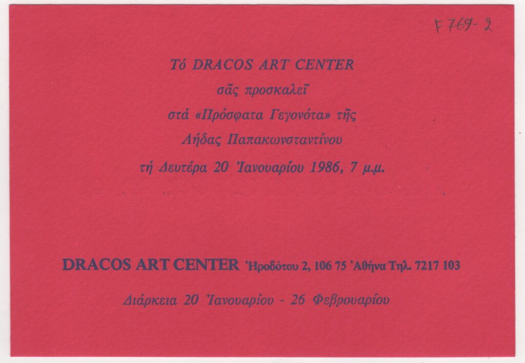 Andreou Kostas (1917 - 2007) ; Kyriakos Rokos (1945) ; Μαρία Λάμπρου ; Luciano Minguzzi ; Tsaras Kostas (1928 - 1986) ; Chariati-Sismani Katerina (1911 - 1990) ; Chrysochoidou, Titsa (1906 - 1990) ; Μαρία Δωρίτου ; Ikaris Nikolaos (1920 - 1994) ; Georgios Kalakallas (1938 - 2021) ; Kenneth Mackenzie Clark ; Argyro Karympaka-Negreponti (1929) ; Katapodis, Giorgos (1951) ; Χρυσούλα Αντωνοπούλου ; Ledaki Maria (1932) ; Σταύρος Μπονάτσος (1945) ; Dimitris Papageorgiou (1928 - 2016) ; Λήδα Παπακωνσταντίνου-Hughes (1945) ; Aristides Patsoglou (1941) ; Αμαλία Βαμβάκου (1925 - 2014) ; Giorgos Stathopoulos (1944) ; Domenico Calabrone (1928 - 2000) ; Κώστας Δομπούλας ; Στάθης Κούρτης ; Elvio Becheroni (1934 - 2000) ; Ευάγγελος Μαρκαντώνης ; Berlini ; Μαρία Βασιλάτου (1936) ; Χαράλαμπος Δαραδήμος ; Βασιλική Γρουσοπούλου-Μαρκούση (1938) ; Τάσος Μουζάκης ; Flip ; Gerasimos Kalogiratos (1940) ; Mascharelli ; Σολομής ; Vulanovic