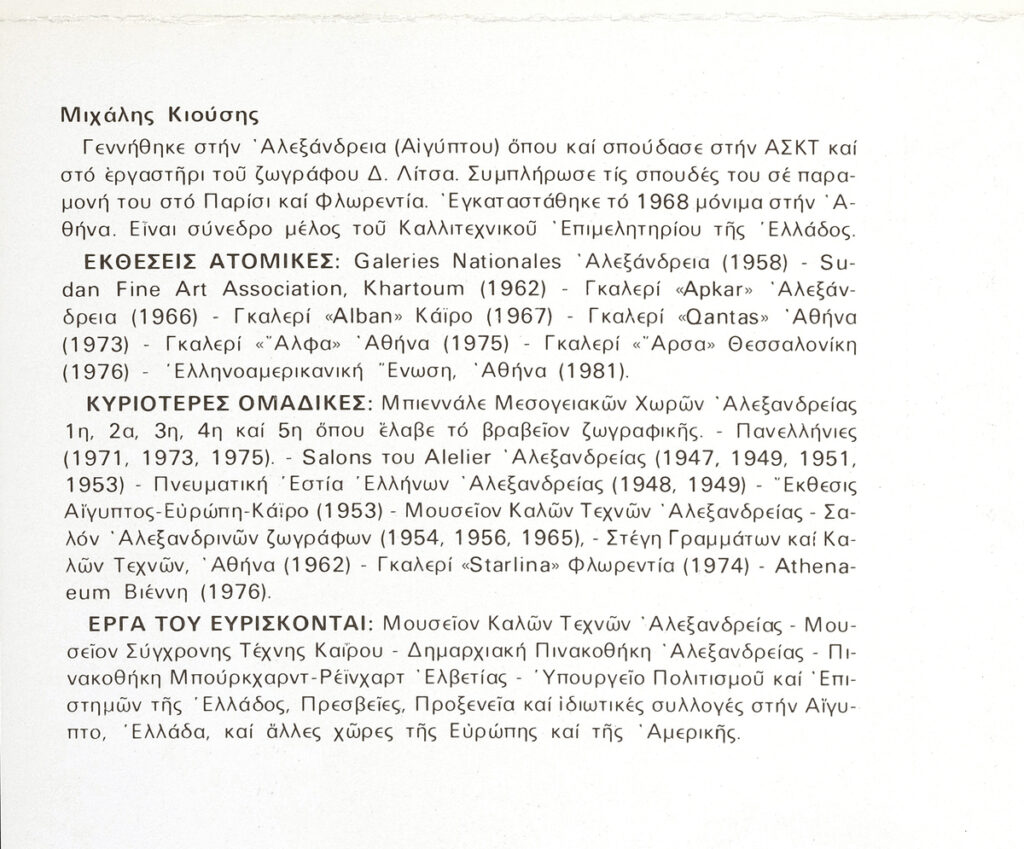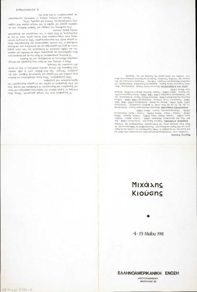 Poster for an exhibition by Michalis Kiousis, at the Hellenic-American Union of Athens.