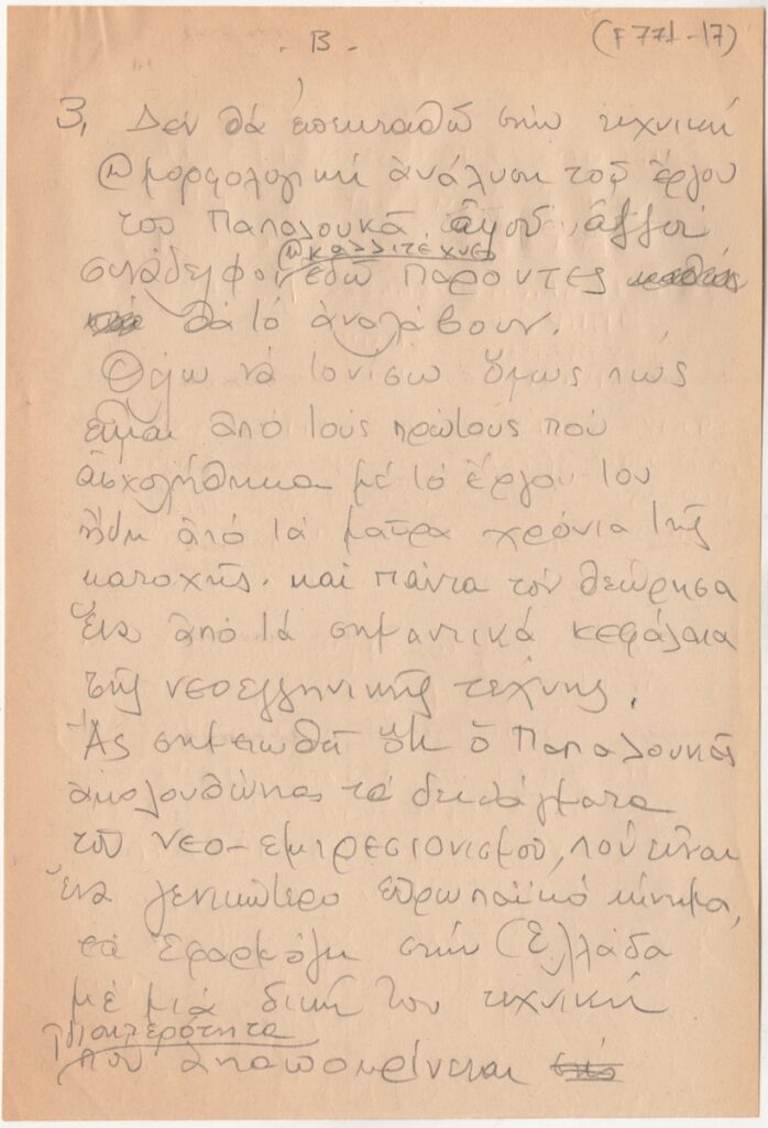 Parthenis Konstantinos (1878 - 1967) ; Fotis Kontoglou (1895 - 1965) ; Michalis Tompros (1889 - 1974) ; Galanis Dimitrios (1879 - 1966) ; Konstantinos Maleas (1879 - 1928) ; Papaloukas Spyros (1892 - 1957) ; Mitarakis Yannis (1898 - 1963) ; Τεν Φλωριάς (1897 - 1969) ; Sofia Laskaridou (1876 - 1965) ; Flora-Karavia Thaleia (1871 - 1960) ; Kefallinos Yannis (1894 - 1957) ; Γεώργιος ο Αθηναίος Δημητριάδης (1880 - 1941) ; Νικόλαος Δραγούμης ; Zevgolis Grigorios (1886 - 1950) ; Kogevinas Lykourgos (1887 - 1940) ; Δημήτριος Μπισκίνης ; Γεώργιος Οικονόμου