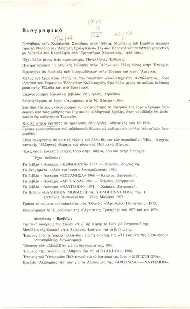Spiteri-Veropoulou Ioanna (1920 - 2000) ; Vassiliou Spyros (1902 - 1985) ; Orestis Kanellis (1910 - 1979) ; Maggiorou Loukia (1914 - 2008) ; Tassos (Anastasios Alevizos) (1914 - 1985) ; Mitarakis Yannis (1898 - 1963) ; Asteriadis Aghinor (1898 - 1977) ; Sikeliotis Giorgos (1917 - 1984) ; Antonakatou Diana (1922 - 2011) ; Eleftheriadis Takis (1911 - 1987) ; Frantziskakis Errikos (1908 - 1958) ; Sochos Antonios (1888 - 1975) ; Bouzianis Giorgos (1885 - 1959) ; Karantinos Sokratis (1906 - 1979) ; Zachariou Fotis (1909 - 2001) ; Μαρία Αναγνωστοπούλου-Βρανίκα (1890 - 1971) ; Karagatsi Niki (1914 - 1986) ; Papanoutsou Ioulia (1900 - 1973)