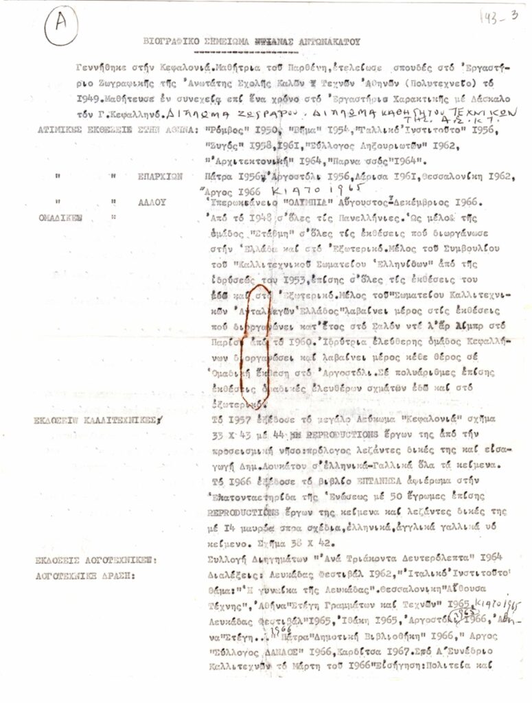 Spiteri-Veropoulou Ioanna (1920 - 2000) ; Vassiliou Spyros (1902 - 1985) ; Orestis Kanellis (1910 - 1979) ; Maggiorou Loukia (1914 - 2008) ; Tassos (Anastasios Alevizos) (1914 - 1985) ; Mitarakis Yannis (1898 - 1963) ; Asteriadis Aghinor (1898 - 1977) ; Sikeliotis Giorgos (1917 - 1984) ; Antonakatou Diana (1922 - 2011) ; Eleftheriadis Takis (1911 - 1987) ; Frantziskakis Errikos (1908 - 1958) ; Sochos Antonios (1888 - 1975) ; Bouzianis Giorgos (1885 - 1959) ; Karantinos Sokratis (1906 - 1979) ; Zachariou Fotis (1909 - 2001) ; Μαρία Αναγνωστοπούλου-Βρανίκα (1890 - 1971) ; Karagatsi Niki (1914 - 1986) ; Papanoutsou Ioulia (1900 - 1973)