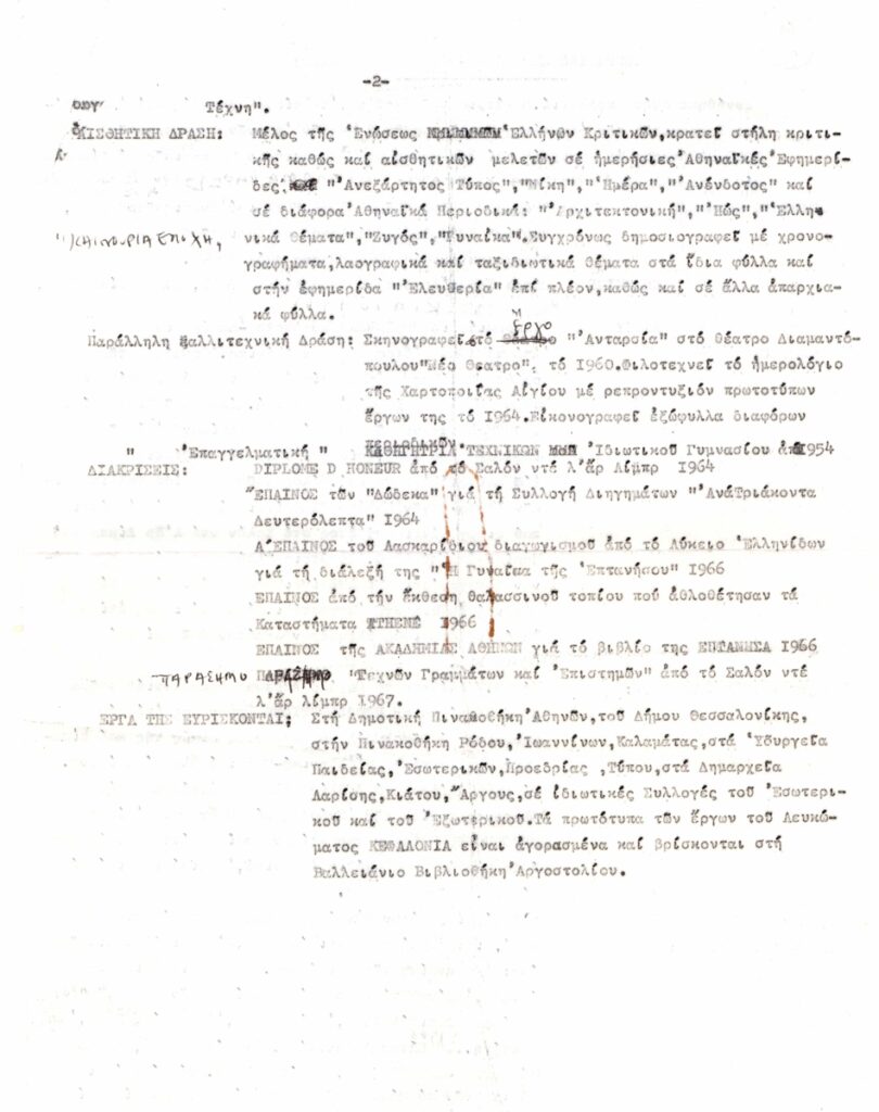 Katraki Vaso (1914 - 1988) ; Spiteri-Veropoulou Ioanna (1920 - 2000) ; Τέρψη Κυριακού (1916 - 1993) ; Antonakatou Diana (1922 - 2011) ; Ισαβέλλα Χαρμπούρη (1905 - 1988) ; Mylonas Alex (1923 - 2016) ; Bekiari Koula (1905 - 1992) ; Chrysochoidou, Titsa (1906 - 1990) ; Chara Vienna-Papageorgiou (1922 - 1982) ; Άννα Βορνόζη ; Χαρίκλεια Αλεξανδρίδου-Στεφανοπούλου (1889 - 1963) ; Ελένη Θεοχάρη-Περάκη ; Μαρία Αναγνωστοπούλου-Βρανίκα (1890 - 1971) ; Ρέα Λεονταρίτου ; Νίτσα Μακαρώνα ; Michelis Effie P. (1906 - 1984) ; Τζένη Αργυρού-Λυμπεροπούλου (1902 - 1975) ; Maria Spentza (1925 - 2011) ; Πηνελόπη Οικονομίδη (1885 - 1967) ; Aglaia Papa (1904 - 1984) ; Papanoutsou Ioulia (1900 - 1973) ; Γιάννα Περσάκη ; Ελένη Πίταρη-Πάγκαλου ; Konstandinidi Eleni (1910 - 1988) ; Ανθούλα Ξανθού-Σταυριανού ; Νέλλη Κυριακού-Καλλιγά ; Μαίρη Τριλίβα-Μαυρικίου ; Ζωή Γκλαβάνη (1929) ; Ρένα Καλαντζή-Τσούχλου ; Δέσπω Λαζαρίδου-Παρασκευαΐδου ; Λέλα Φλώρου-Πολυκανδριώτου