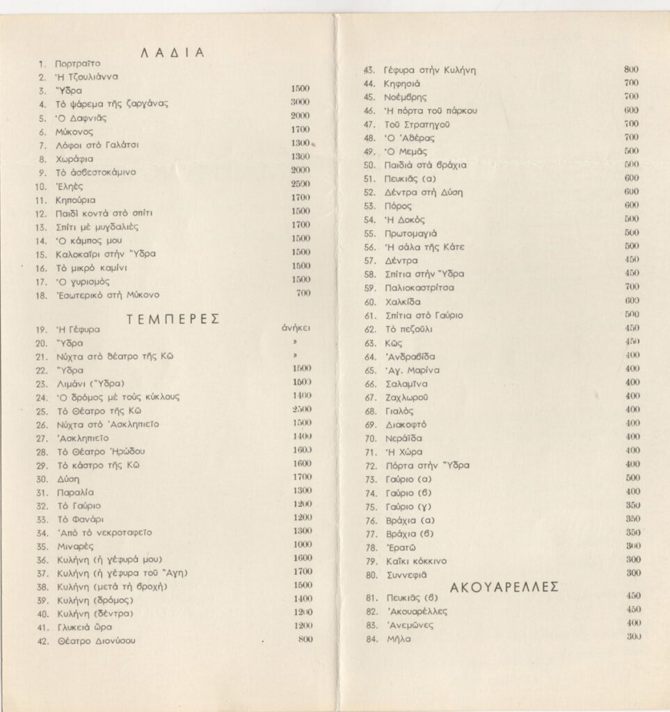 Teloglion Foundation of Arts ; Spiteris Tonis (1910 - 1986) ; Goulaki-Voutira Alexandra (20th century) ; Makris Kitsos (1917 - 1988) ; Mavrommatis Emmanouil (1935) ; Xydis Alexandros (1918 - 2004) ; Papanikolaou Miltiadis (1947) ; Pantermalis Dimitrios (1940) ; Mourelos Georgios (1912 - 1994) ; Christou Chrysanthos (1922 - 2016) ; Kazazi Sofia (20th century) ; Stefanidis Manos (1954) ; Varopoulou Eleni (1945 ) ; Kampouridis Charis (1950) ; Schina Athina ; Georgiadou-Kountoura Euthymia (20th century) ; Kotidis Antonis (1949) ; Charalampidis Alkis (20th century) ; Christianopoulos Ntinos (1931 - 2020) ; Nikonanos Nikos (20th century) ; Fatourou-Isychaki Kanto (20th century) ; Skaltsa Matoura (20th century) ; Sachini Aggeliki (20th century) ; Nikoulis G. (20th century) ; Ioannidis Andreas (1950) ; Pappa Sania (1957)