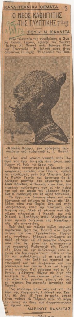 Katraki Vaso (1914 - 1988) ; Spiteri-Veropoulou Ioanna (1920 - 2000) ; Valsamakis Panos (1900 - 1986) ; Vassiliou Spyros (1902 - 1985) ; Eleni Vakalo (1921 - 2001) ; Kalligas Marinos (1906 - 1985) ; Christos Kapralos (1909 - 1993) ; Σπύρος Παναγιωτόπουλος (1894 - 1987) ; Efi Ferentinou (1915 - 1979) ; Tetsis Panagiotis (1925 - 2016) ; Nikos Nikolaou (1909 - 1986) ; Pappas Giannis (1913 - 2005) ; Alexandros Korogiannakis (1906 - 1966) ; Γιώργος Φωκάς
