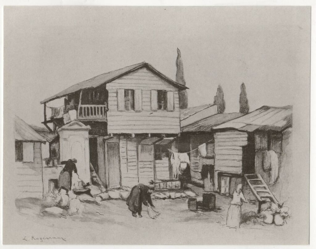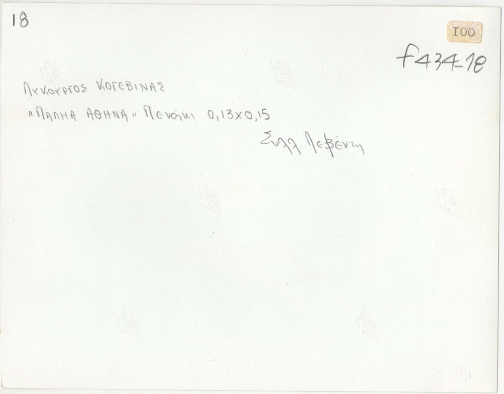 Black-and-white printed photograph of a painting by Lykourgos Kogevenas. On the reverse, a handwritten inscription.