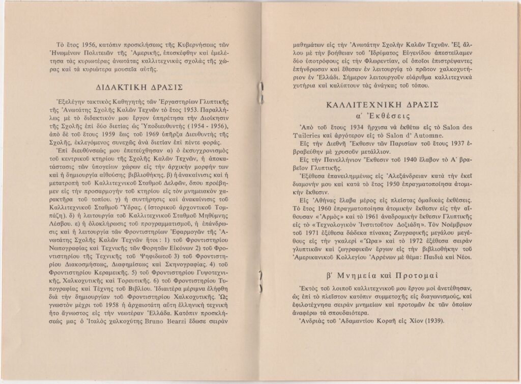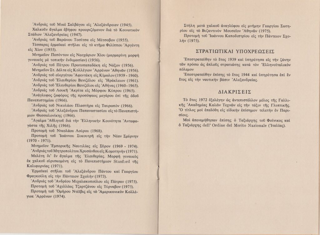 Katraki Vaso (1914 - 1988) ; Spiteri-Veropoulou Ioanna (1920 - 2000) ; Valsamakis Panos (1900 - 1986) ; Vassiliou Spyros (1902 - 1985) ; Eleni Vakalo (1921 - 2001) ; Kalligas Marinos (1906 - 1985) ; Kapralos Christos (1909 - 1993) ; Σπύρος Παναγιωτόπουλος (1894 - 1987) ; Efi Ferentinou (1915 - 1979) ; Tetsis Panagiotis (1925 - 2016) ; Nikos Nikolaou (1909 - 1986) ; Pappas Giannis (1913 - 2005) ; Alexandros Korogiannakis (1906 - 1966) ; Γιώργος Φωκάς
