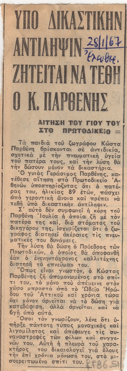 Parthenis Konstantinos (1878 - 1967) ; Kiosse Chara (1934 - 2024) ; Vyzantios Periclis (1893 - 1972) ; Kogevinas Lykourgos (1887 - 1940) ; Chatzopoulou, Aikaterini (1862 - 1940)