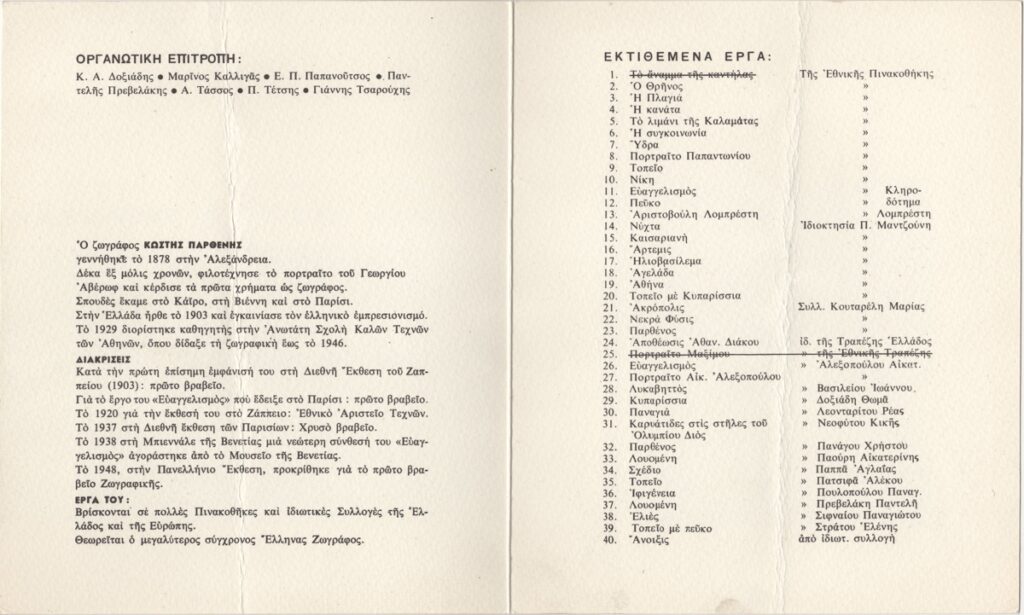 Parthenis Konstantinos (1878 - 1967) ; Kiosse Chara (1934 - 2024) ; Vyzantios Periclis (1893 - 1972) ; Kogevinas Lykourgos (1887 - 1940) ; Chatzopoulou, Aikaterini (1862 - 1940)